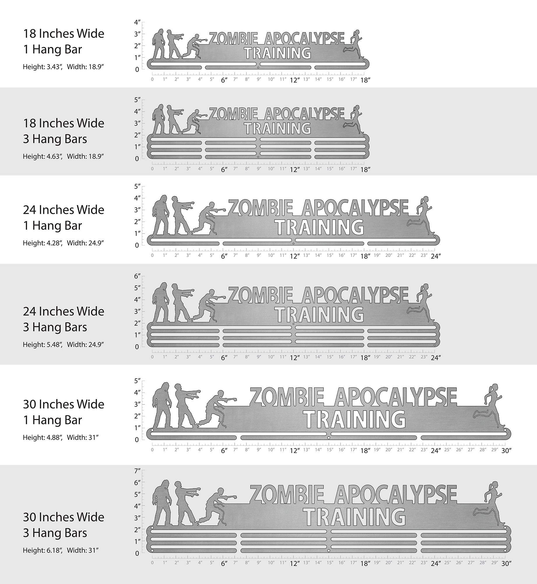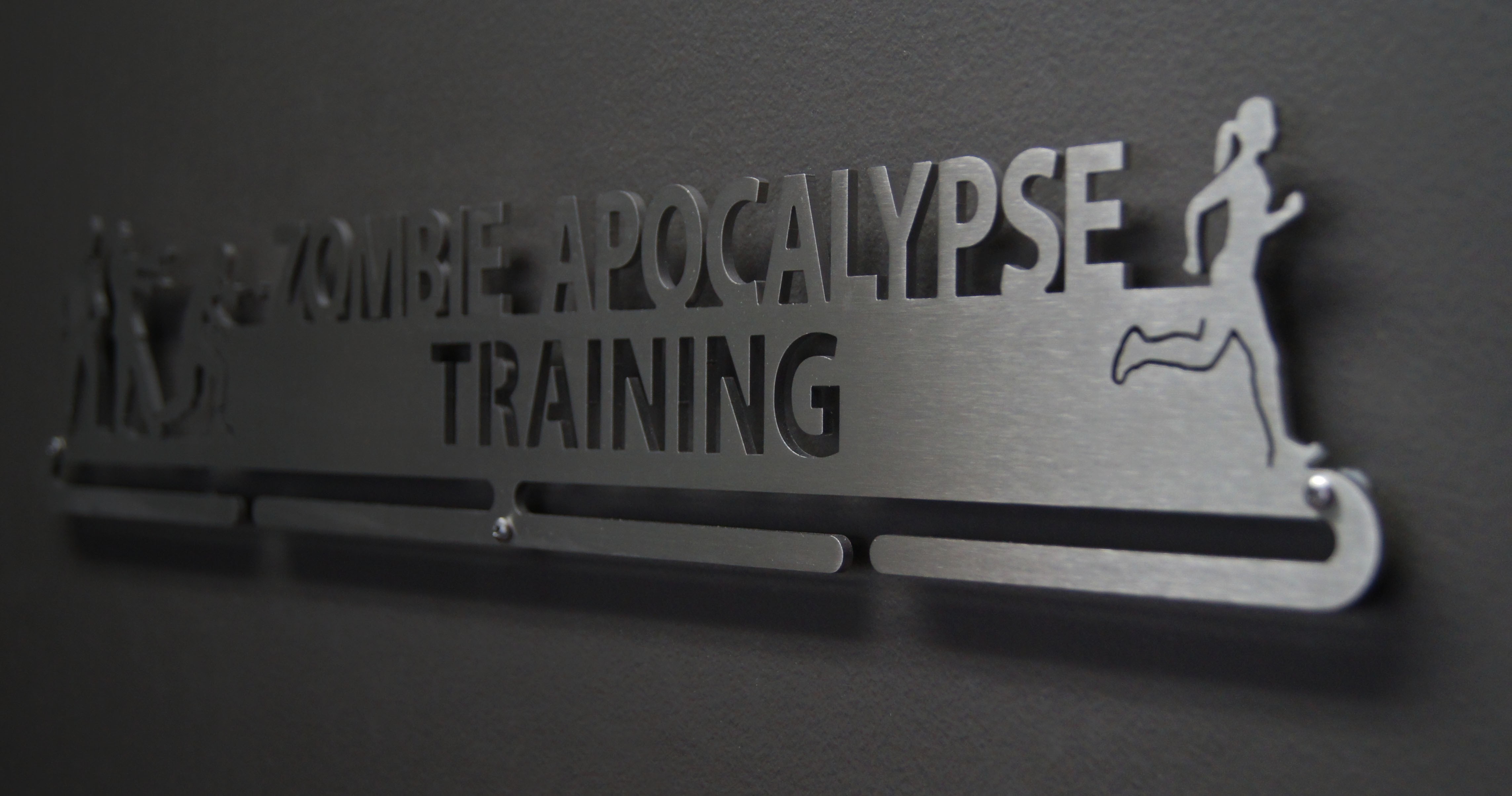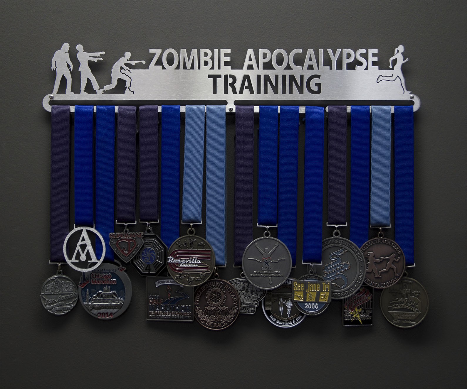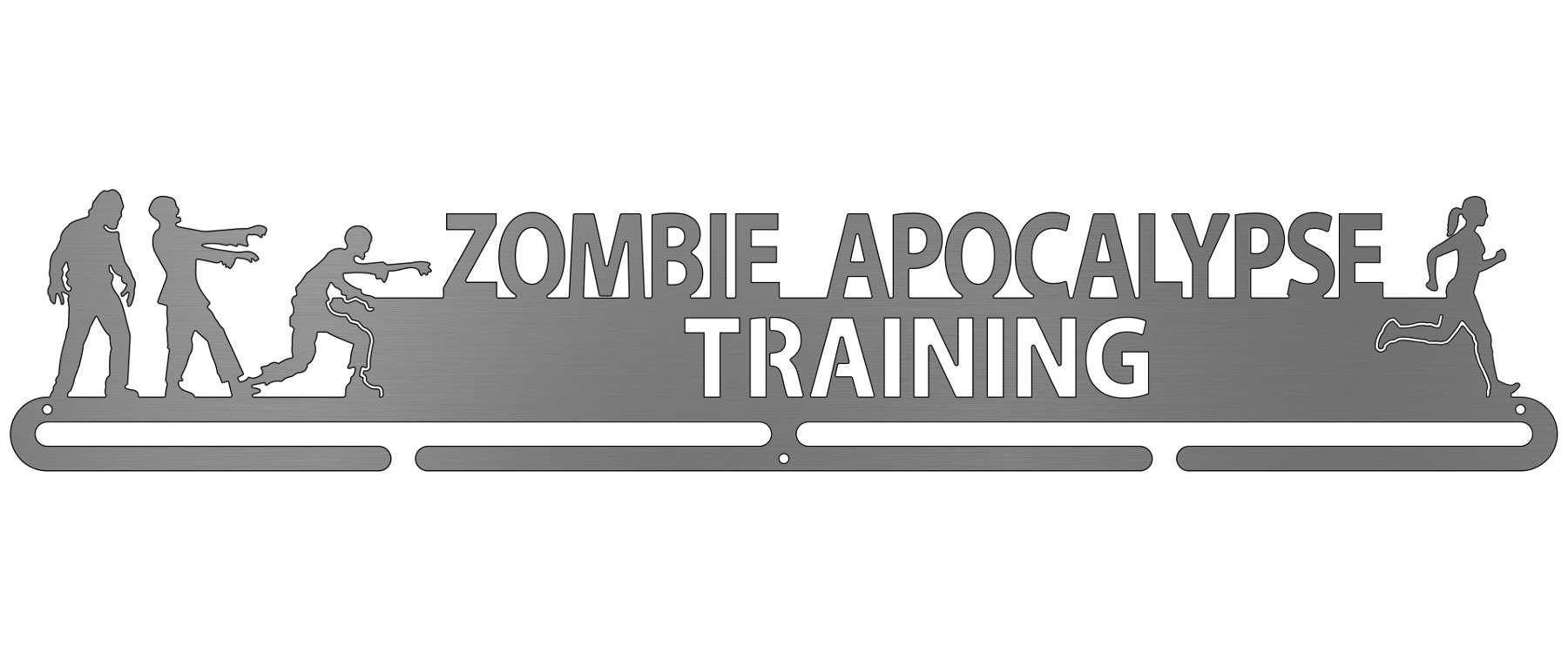 Running will come in quite handy when the Zombie Apocalypse hits! Until then, use this hanger to display your finisher medals.