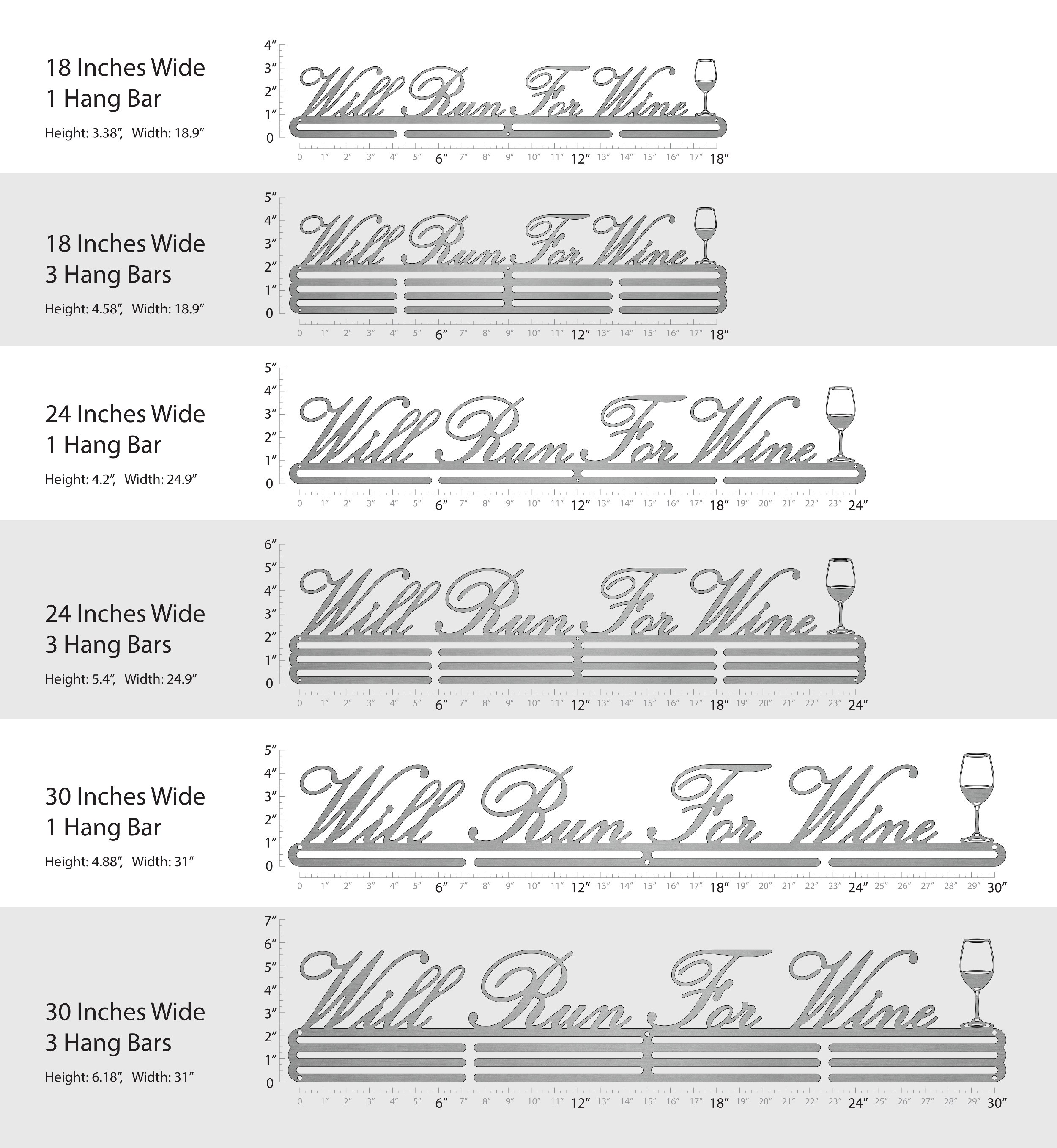 Unsure what size to get? We have created two consistently scaled images to show you what different sized displays look like when filled with medals.