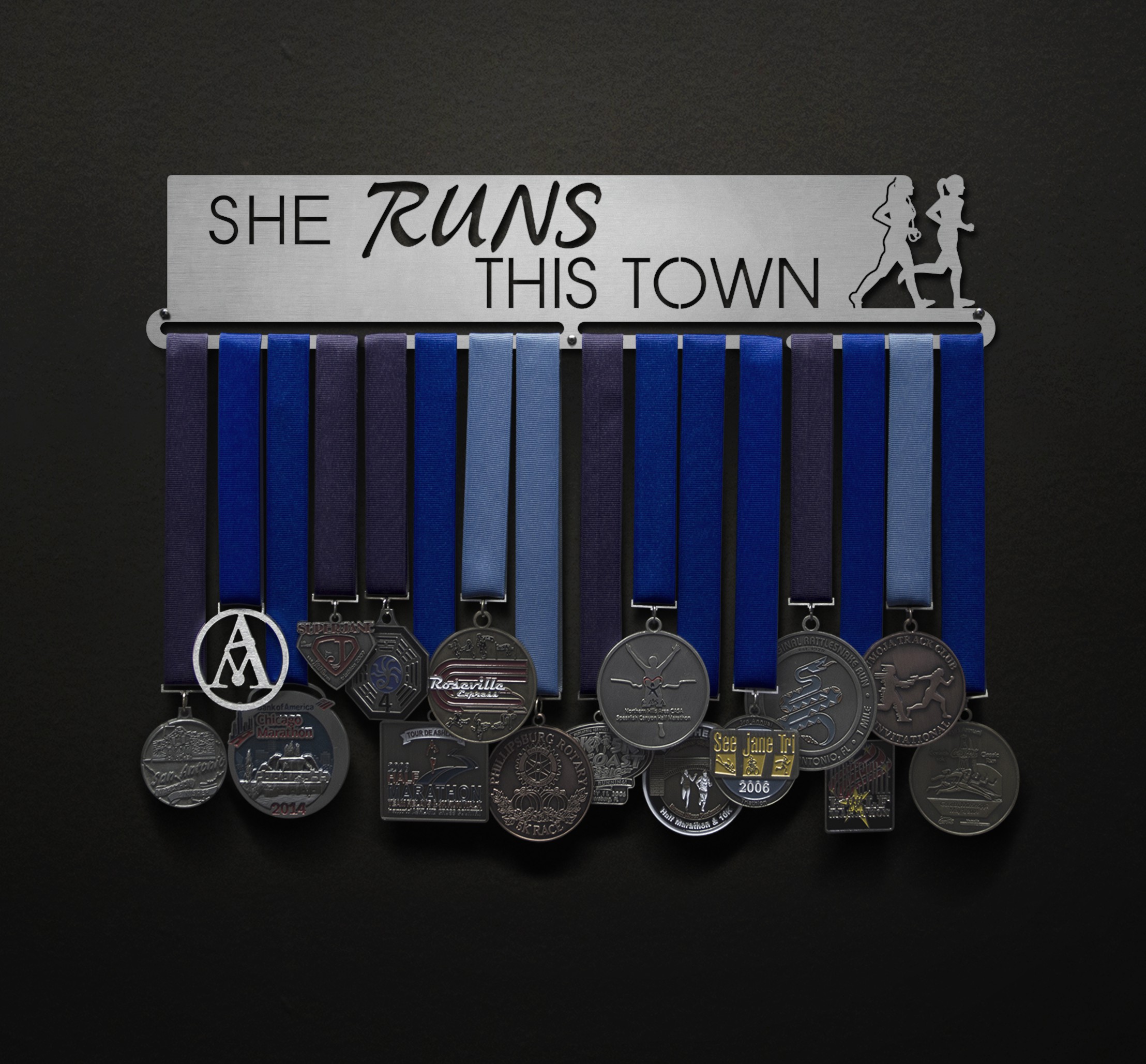 Unsure what size to get? We have created two consistently scaled images to show you what different sized displays look like when filled with medals.