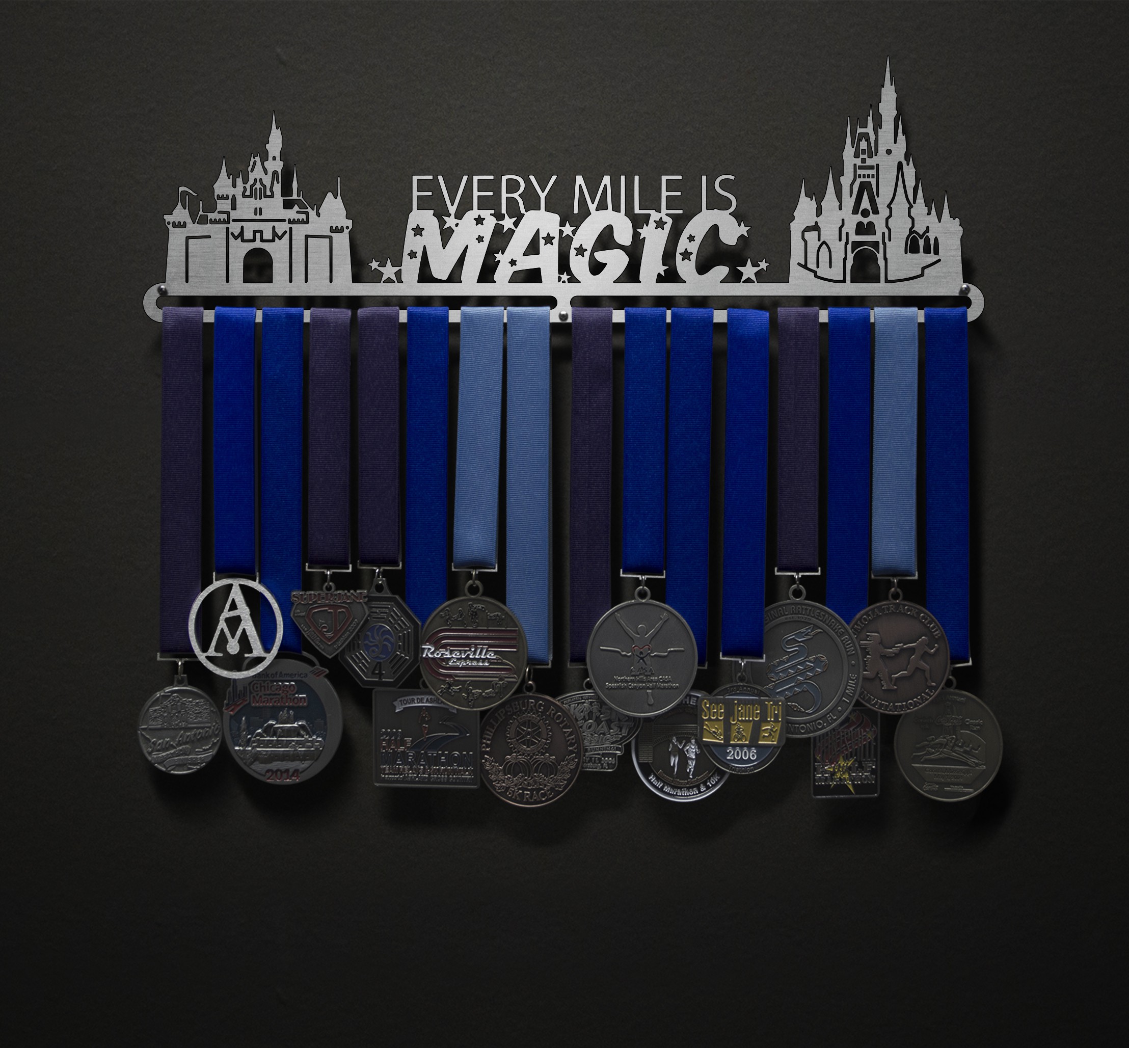 A new version of the popular "Every Mile Is Magic" phrase, but now with more detailed castles and two lines of text!