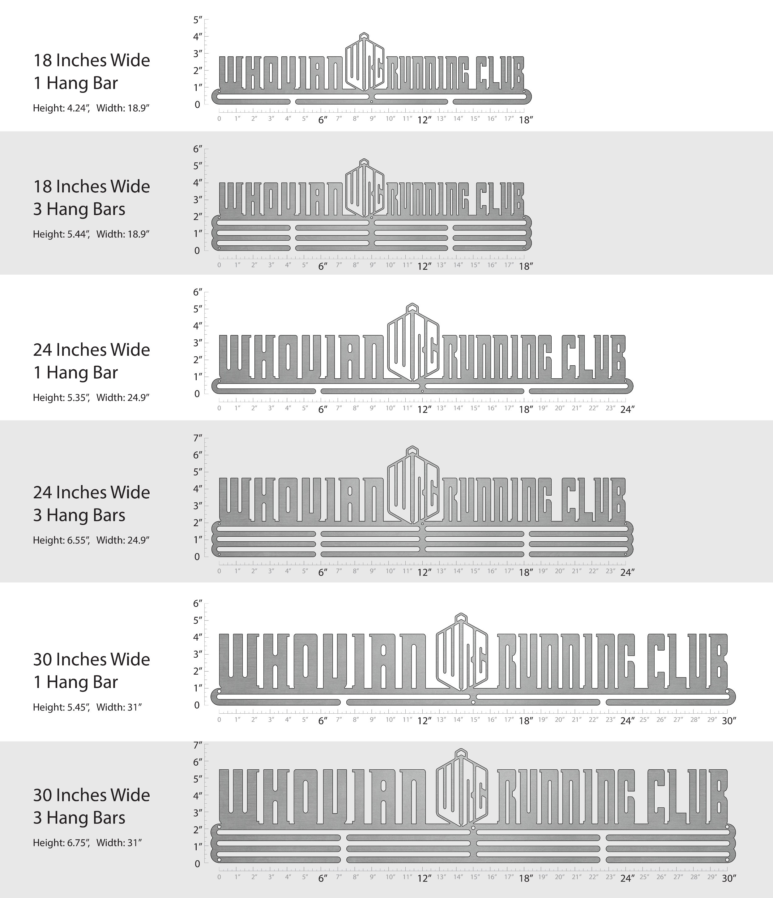 Unsure what size to get? We have created two consistently scaled images to show you what different sized displays look like when filled with medals.