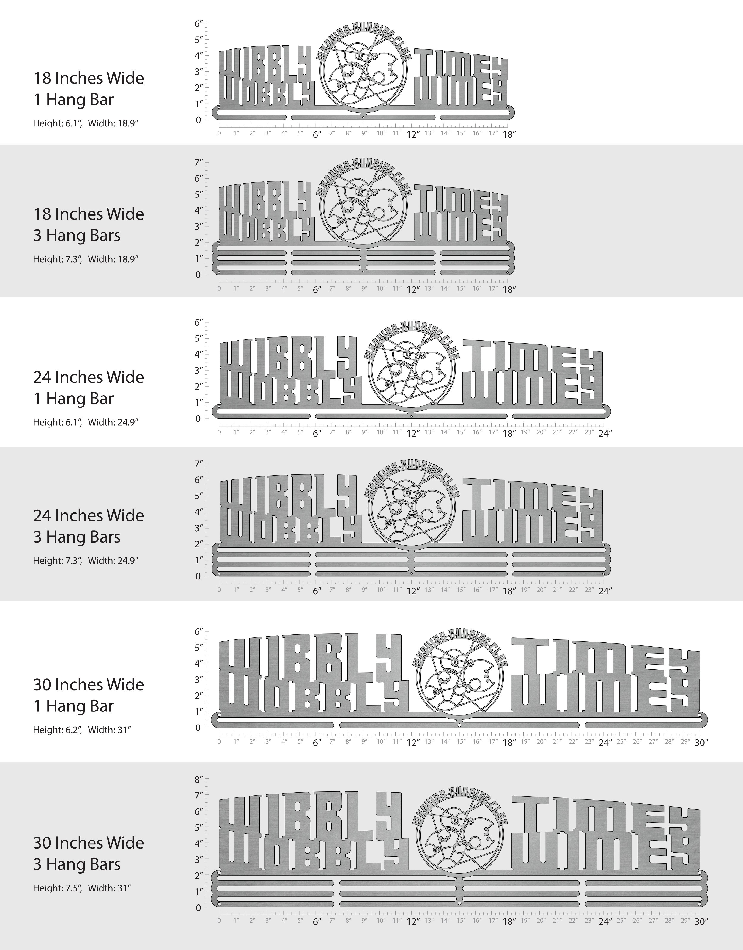 Unsure what size to get? We have created two consistently scaled images to show you what different sized displays look like when filled with medals.