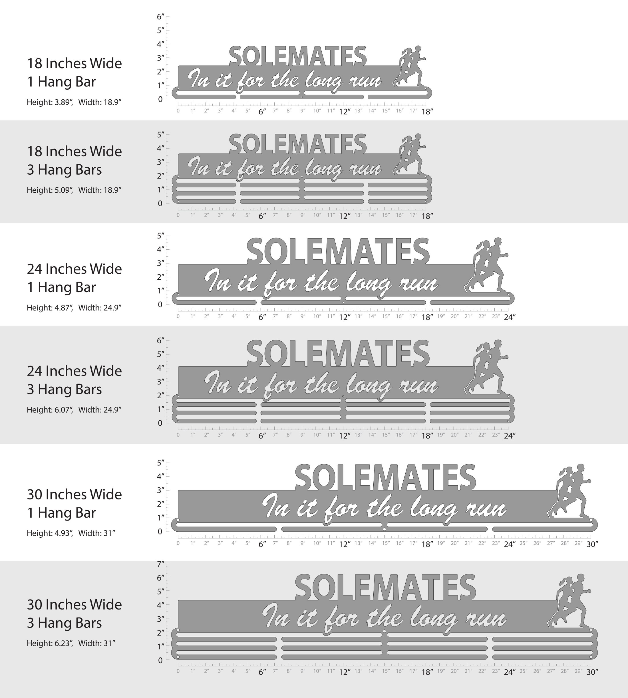 Unsure what size to get? We have created two consistently scaled images to show you what different sized displays look like when filled with medals.