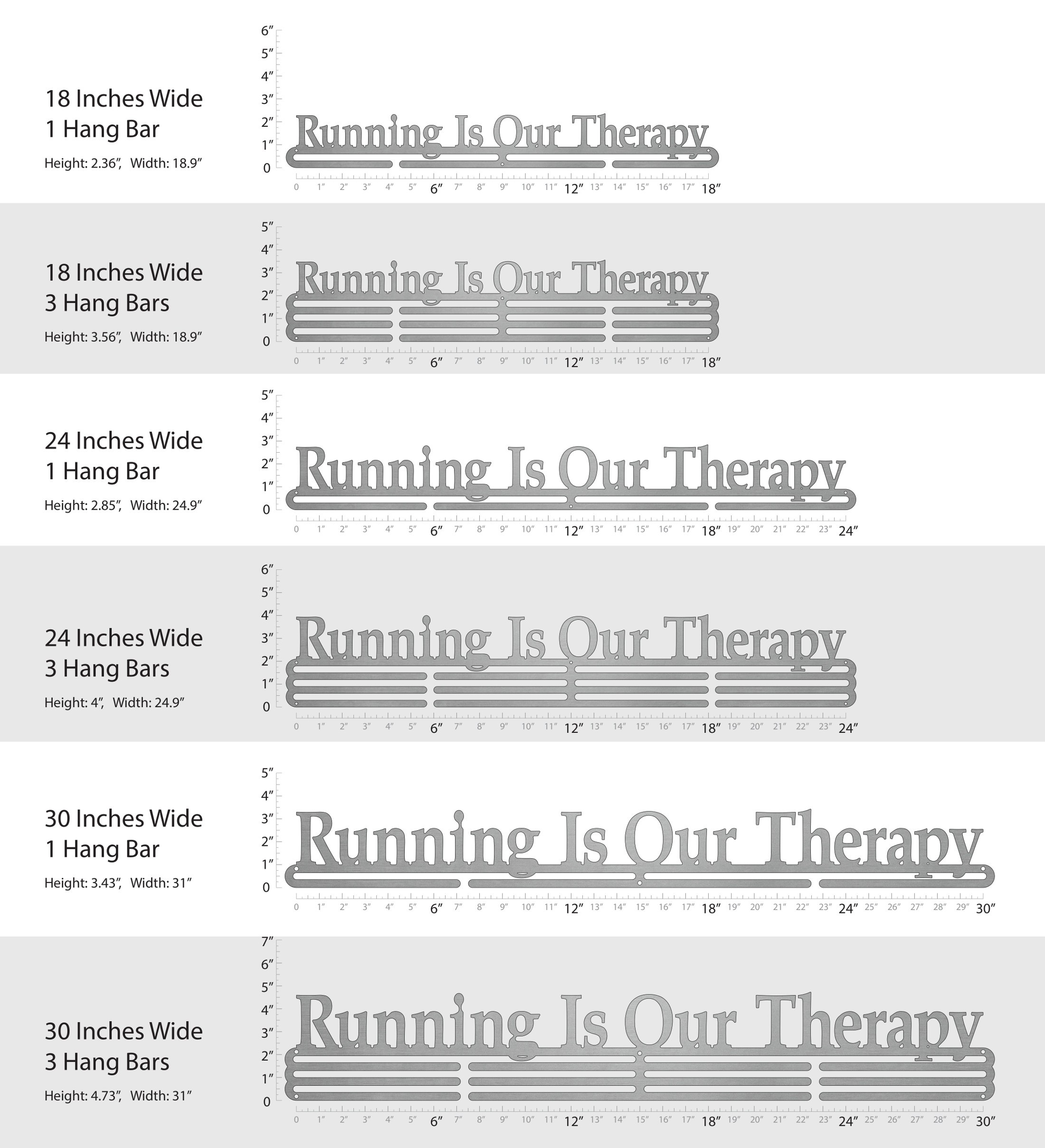 Unsure what size to get? We have created two consistently scaled images to show you what different sized displays look like when filled with medals.