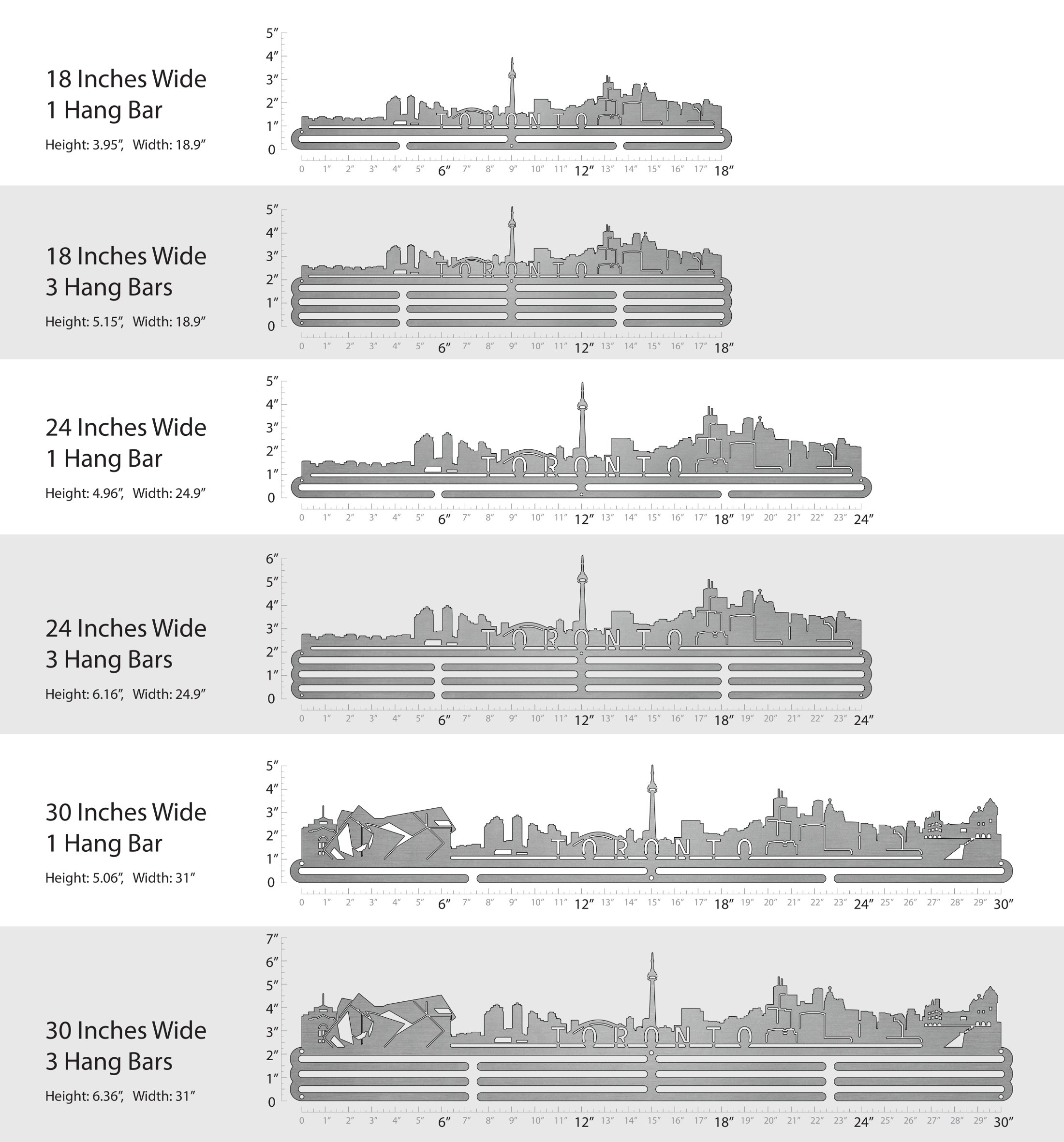 Unsure what size to get? We have created two consistently scaled images to show you what different sized displays look like when filled with medals.