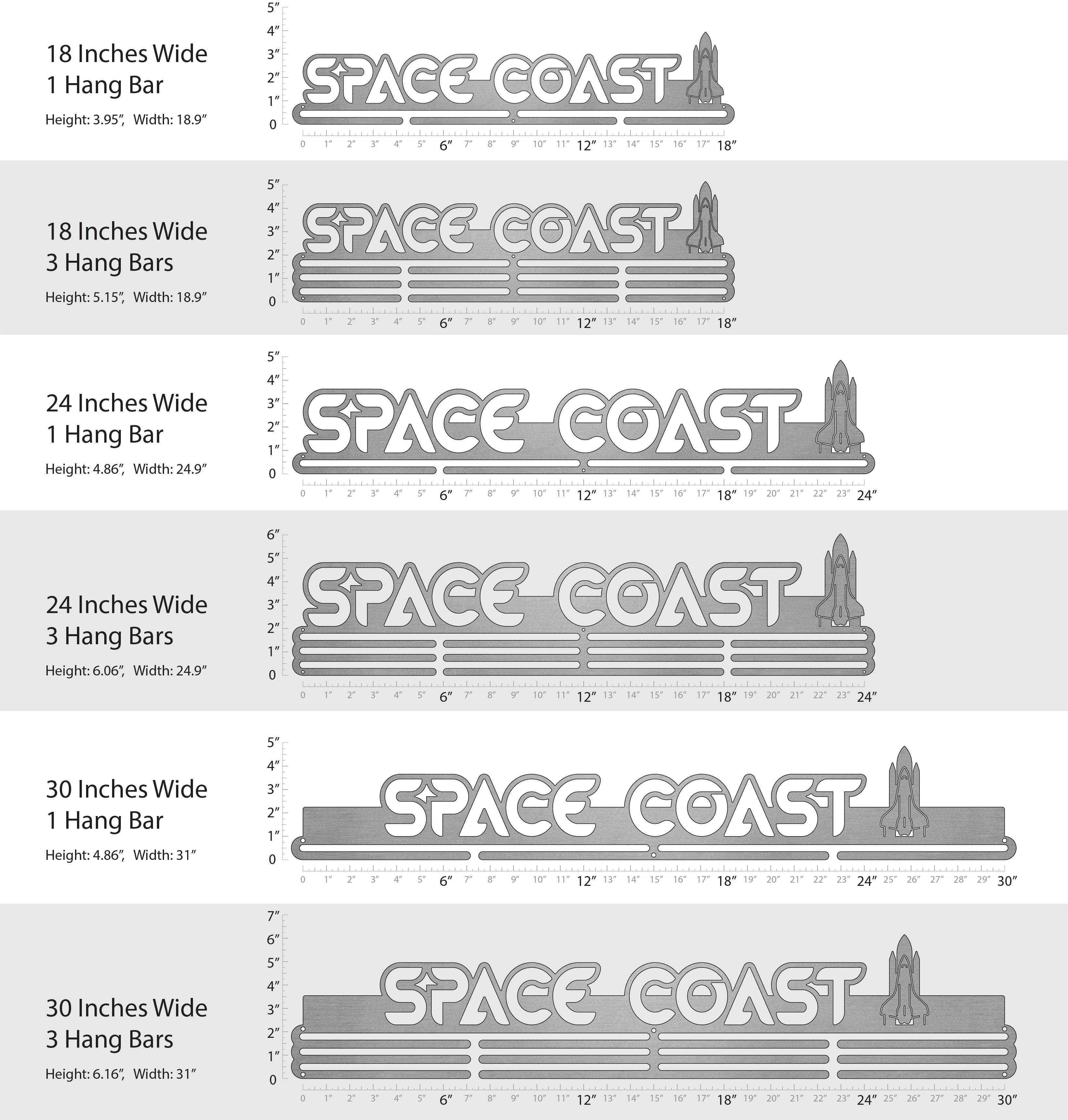 Unsure what size to get? We have created two consistently scaled images to show you what different sized displays look like when filled with medals.
