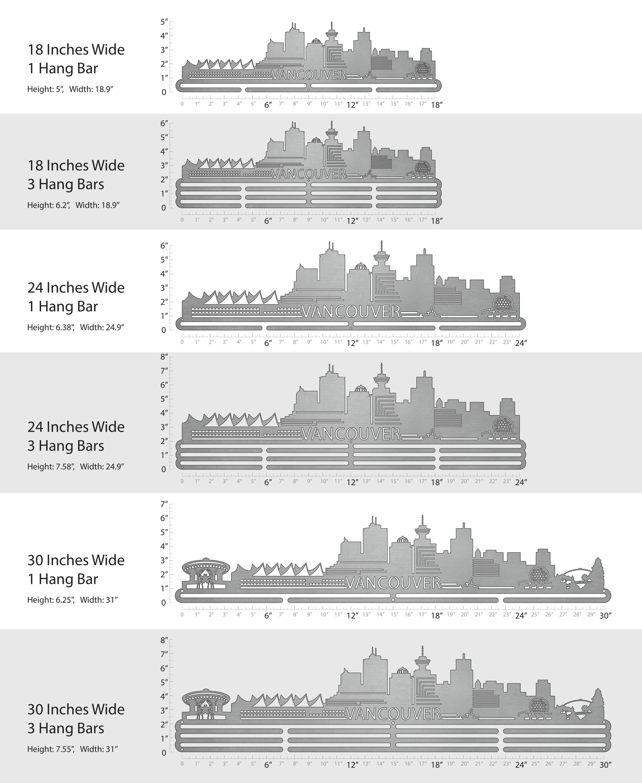 Unsure what size to get? We have created two consistently scaled images to show you what different sized displays look like when filled with medals.