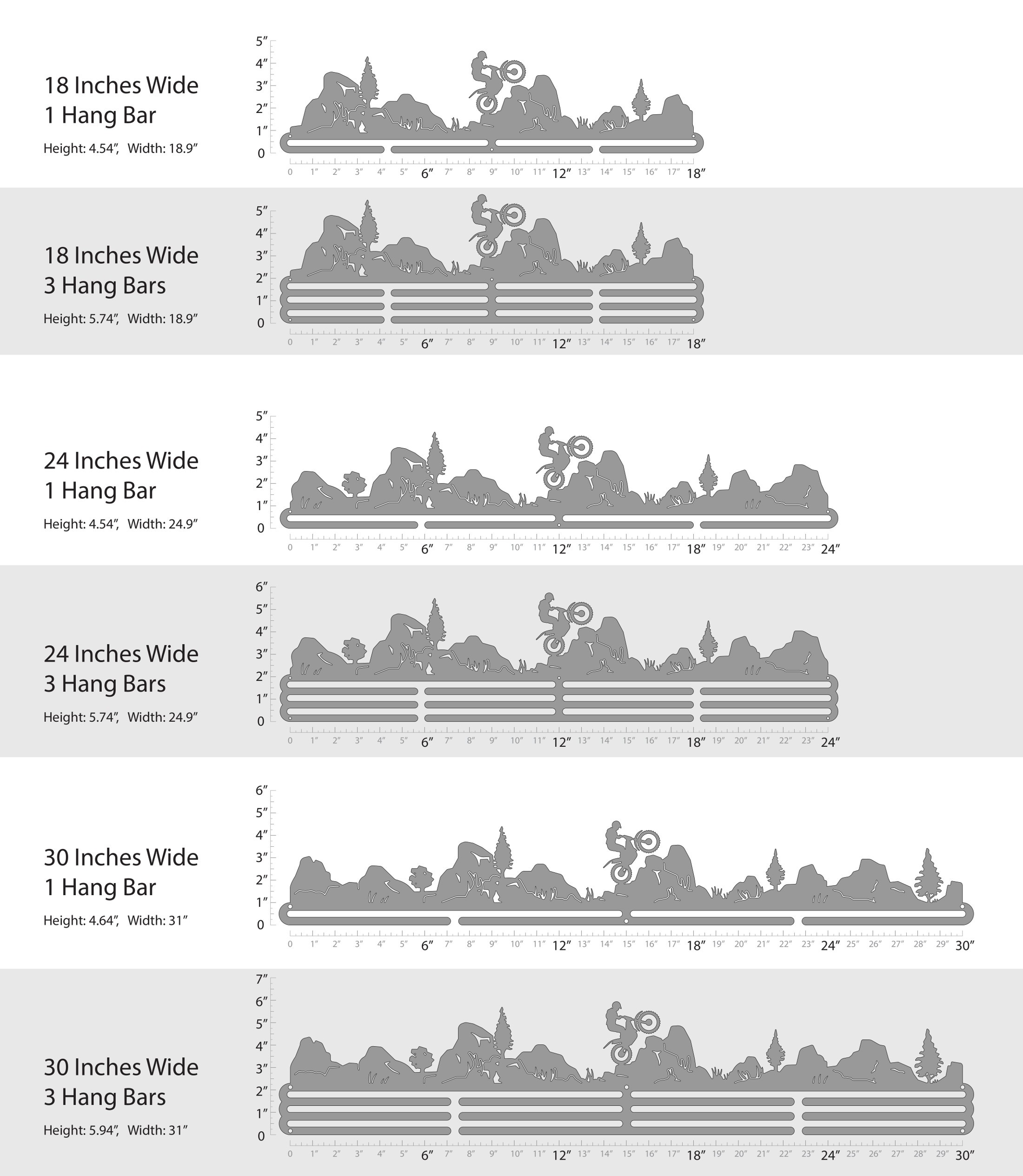 Unsure what size to get? We have created two consistently scaled images to show you what different sized displays look like when filled with medals.