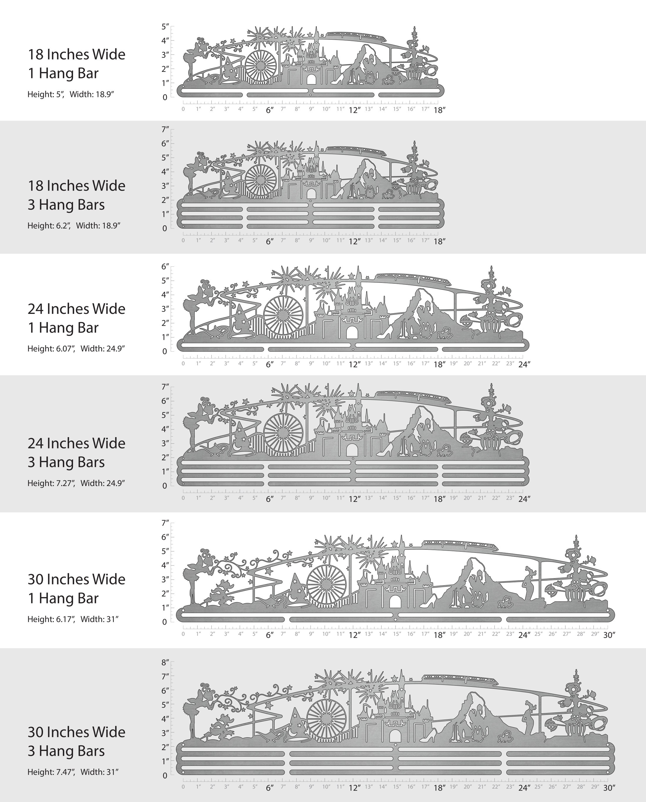 Ordering a "3 hanger bar" display will triple these figures, and will come with clear plastic ribbon clips to shorten or stagger the lengths of the ribbons.