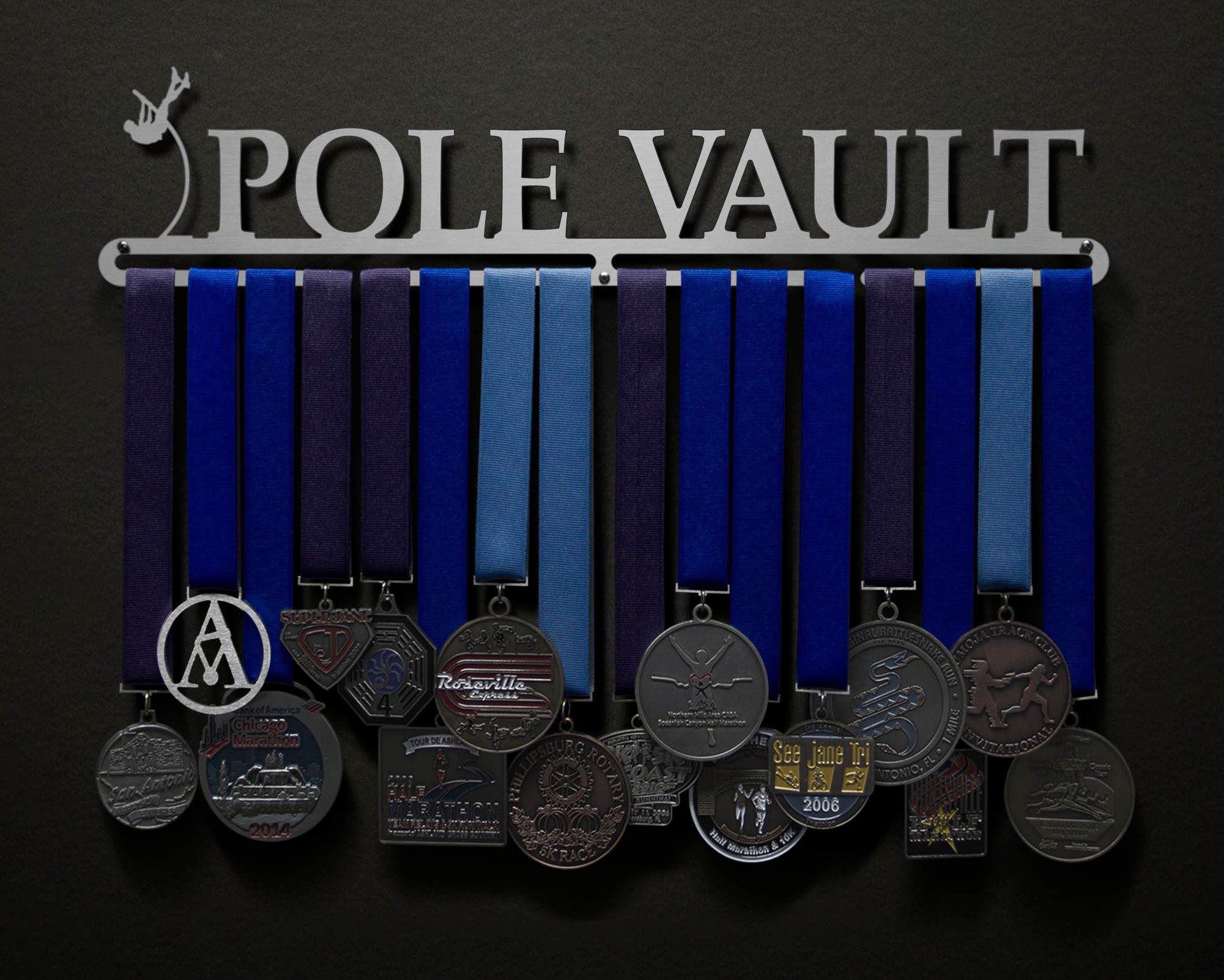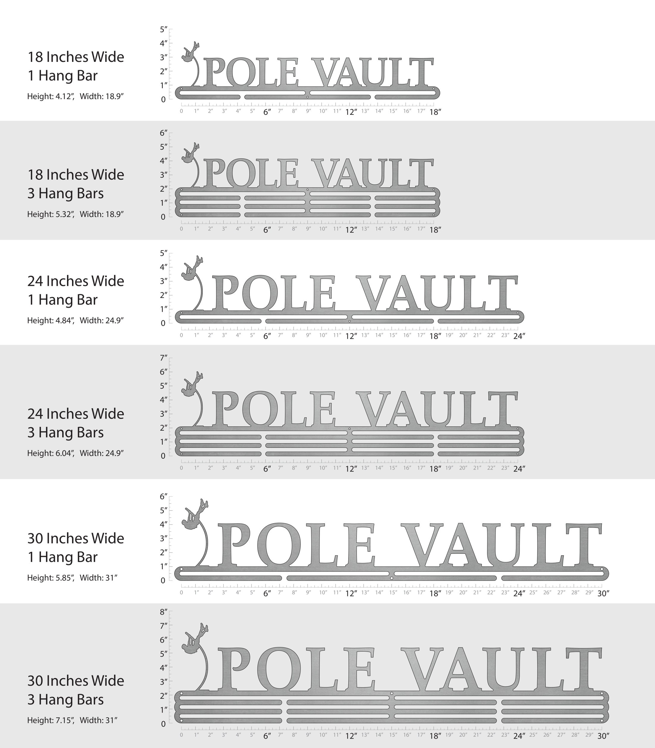 Unsure what size to get? We have created two consistently scaled images to show you what different sized displays look like when filled with medals.