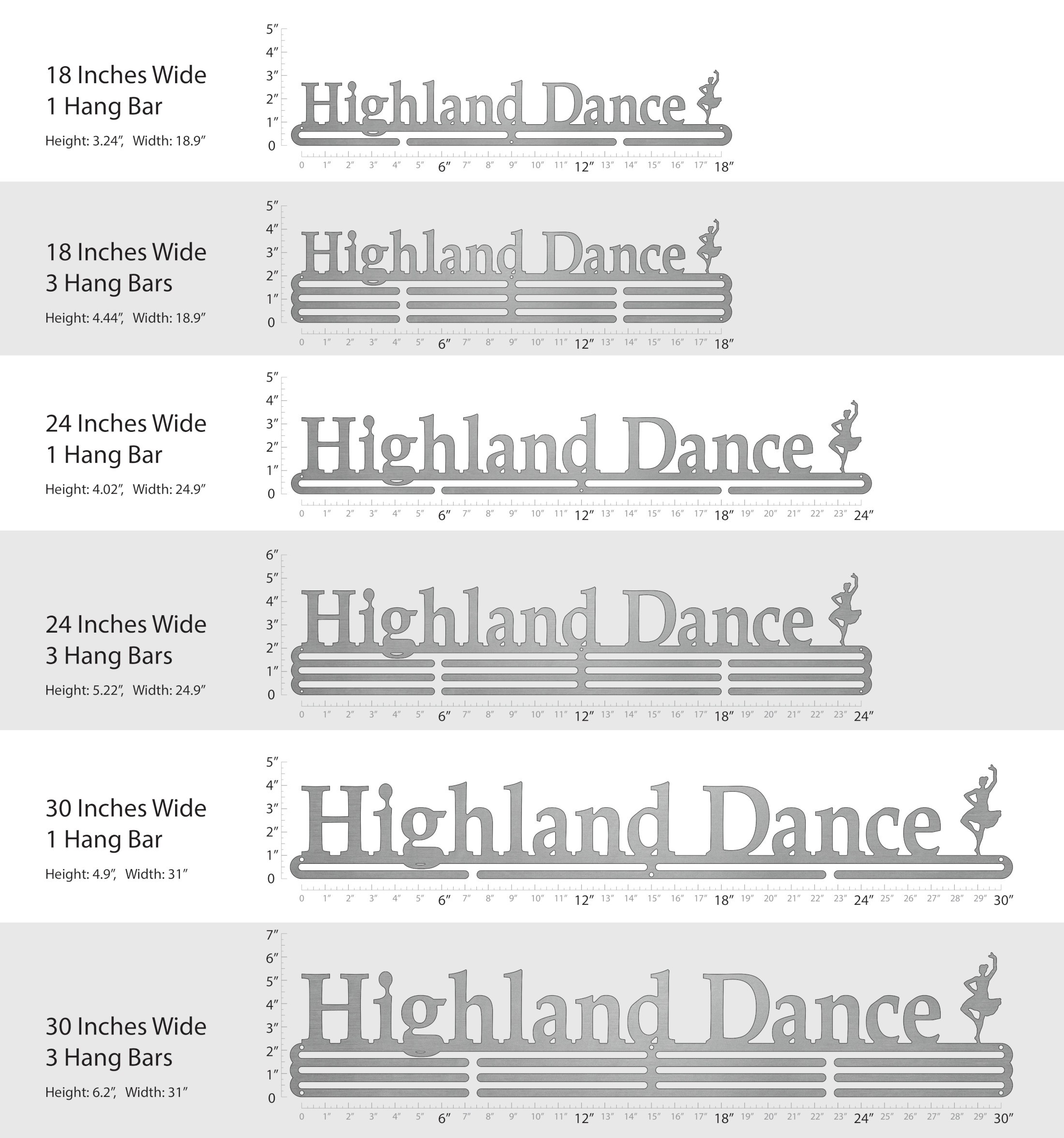 Unsure what size to get? We have created two consistently scaled images to show you what different sized displays look like when filled with medals.