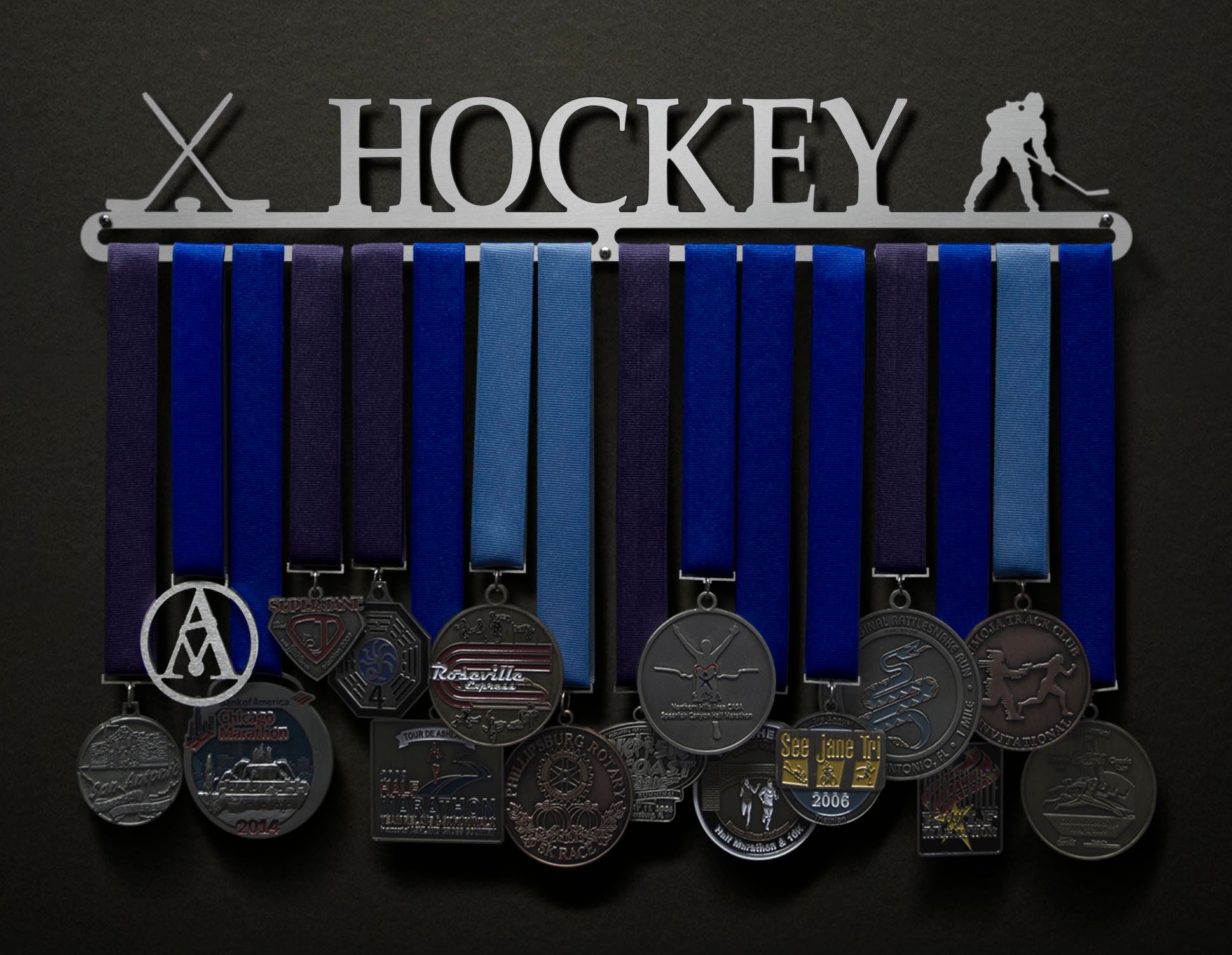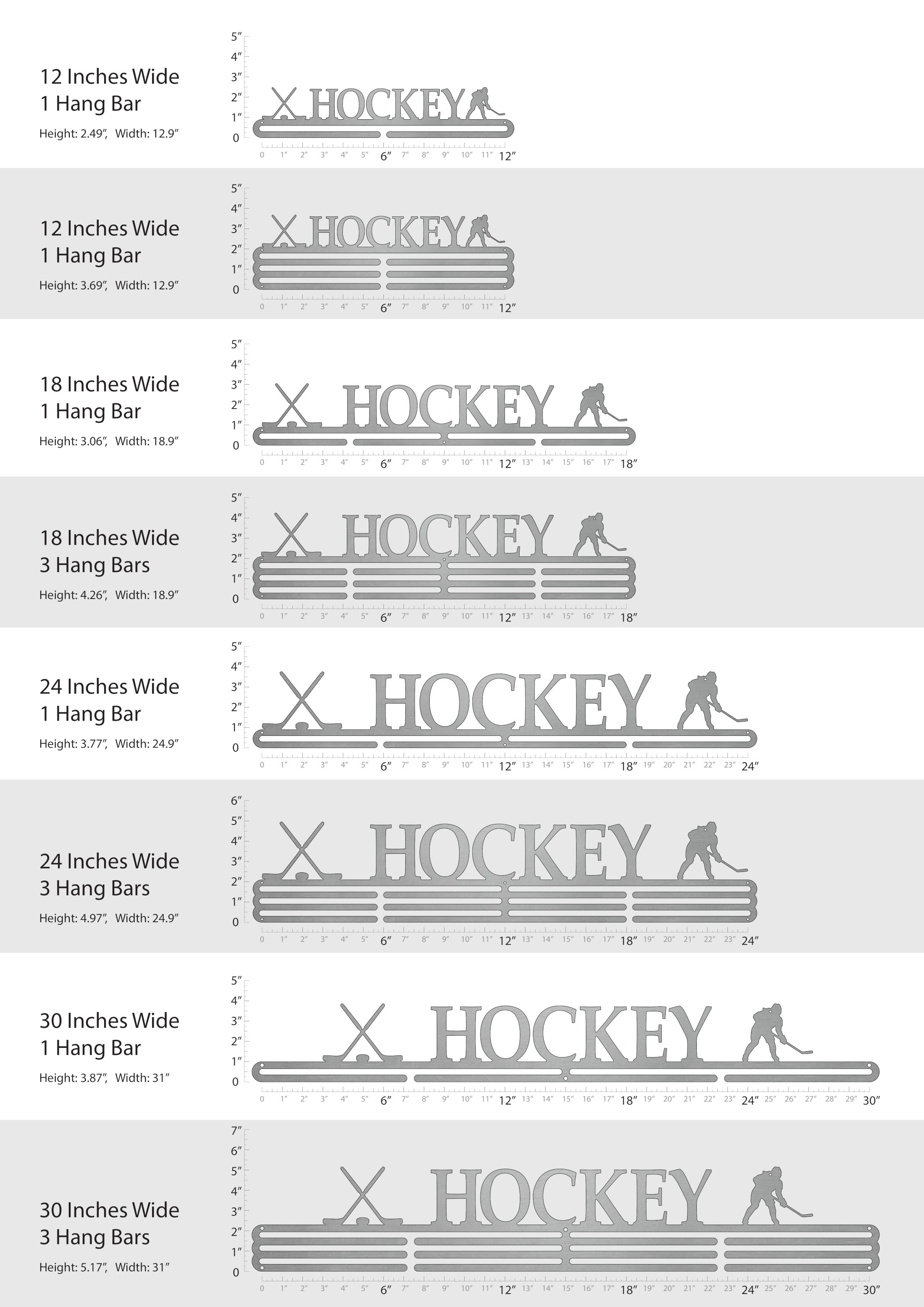Unsure what size to get? We have created two consistently scaled images to show you what different sized displays look like when filled with medals.