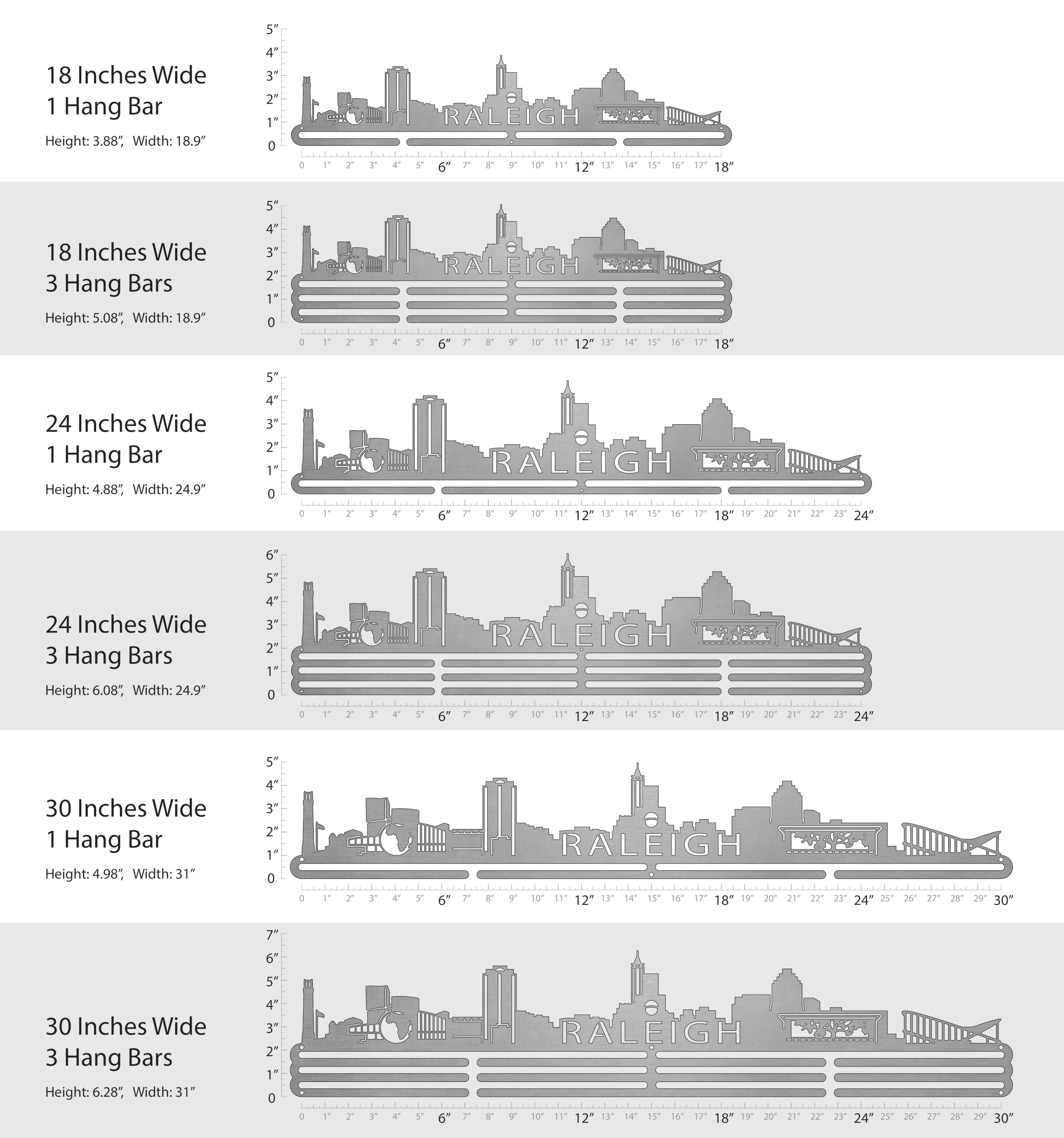 Unsure what size to get? We have created two consistently scaled images to show you what different sized displays look like when filled with medals.
