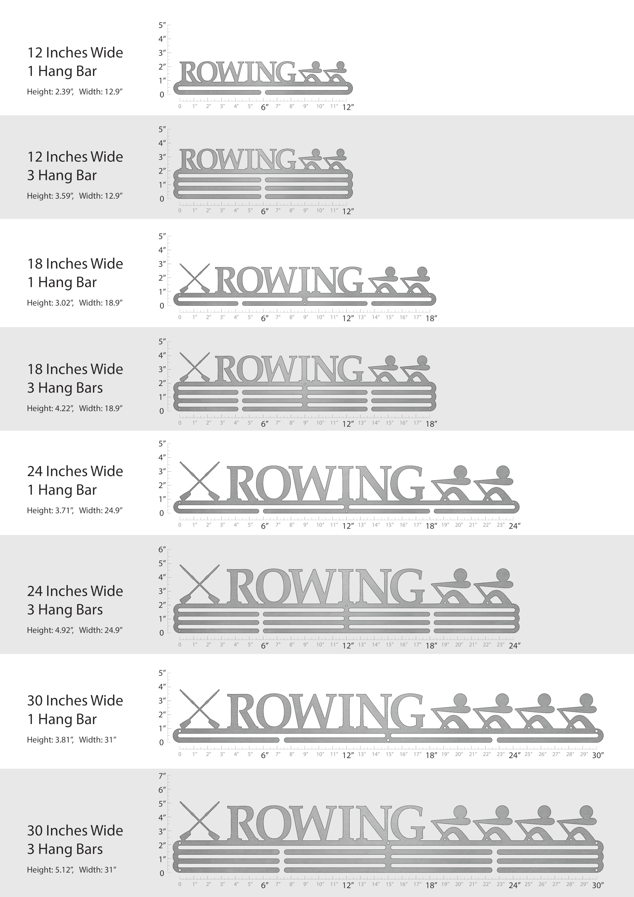Unsure what size to get? We have created two consistently scaled images to show you what different sized displays look like when filled with medals.