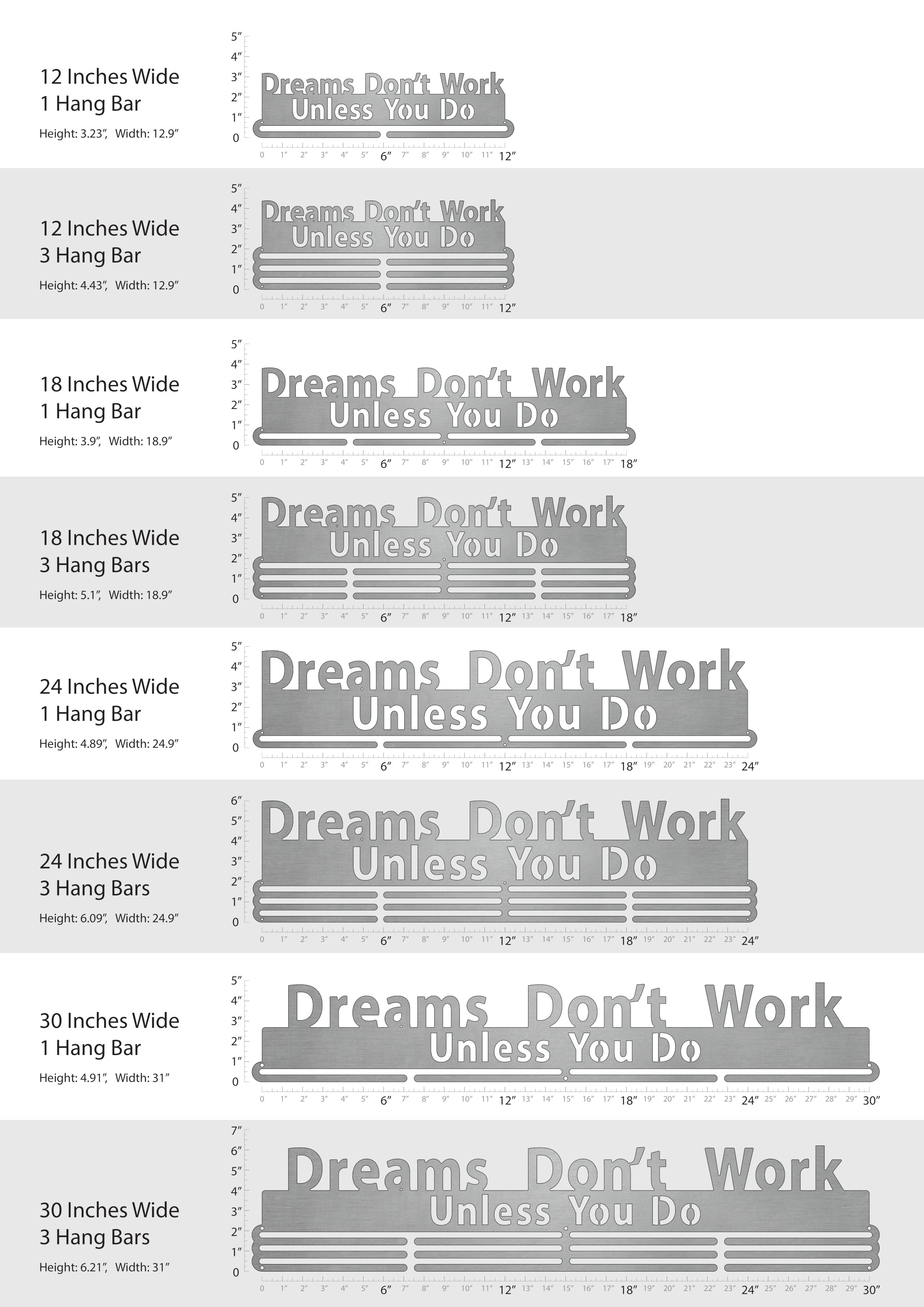 Unsure what size to get? We have created two consistently scaled images to show you what different sized displays look like when filled with medals.