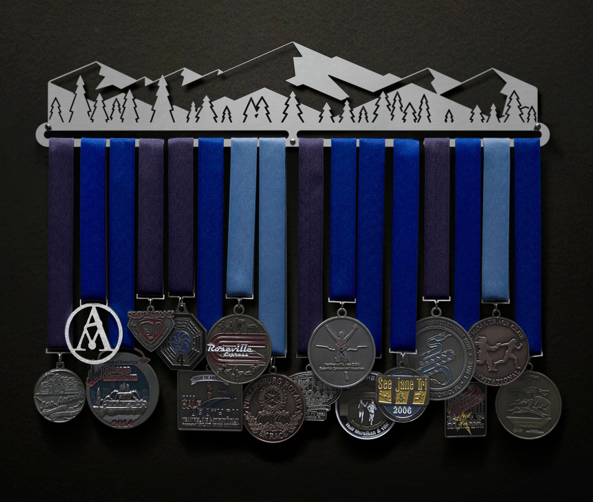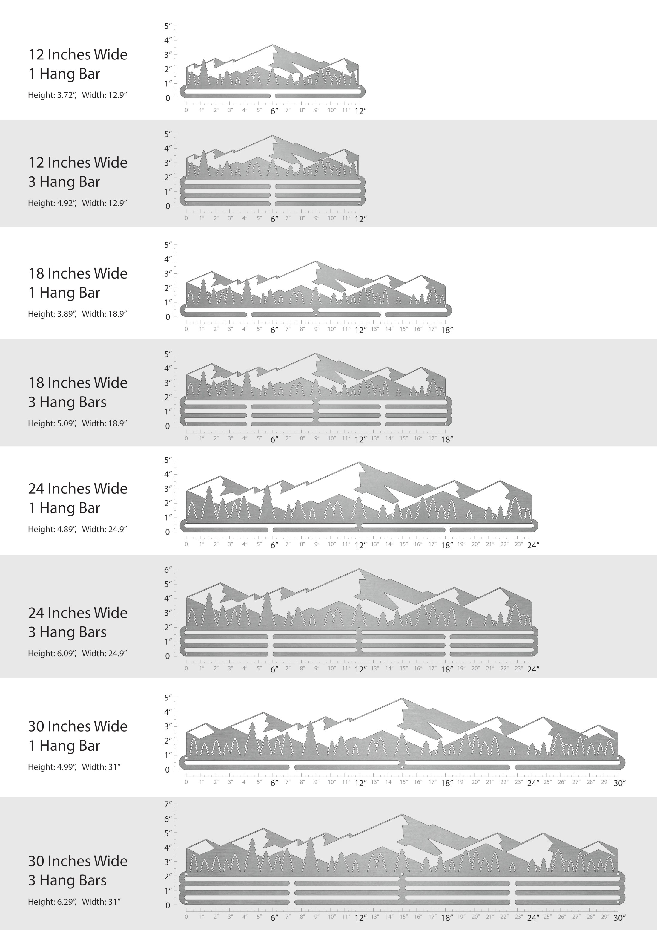 Unsure what size to get? We have created two consistently scaled images to show you what different sized displays look like when filled with medals.