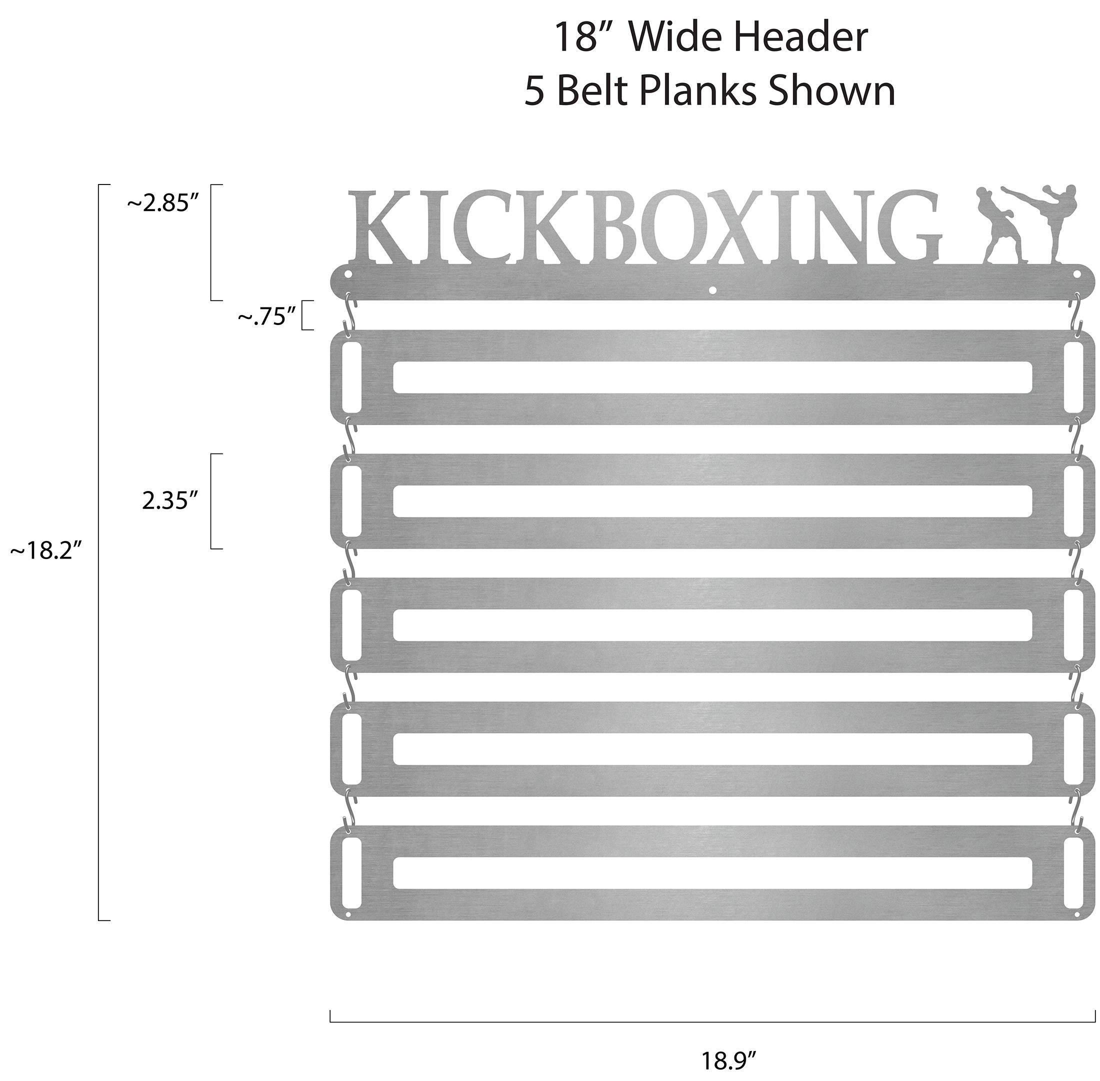 This modular design allows you to add your belts to the display as you earn them without having any blank or unused spaces for future belts. Once you earn a new belt, you just affix it to a new belt plank and hang it from your already-existing belt display!