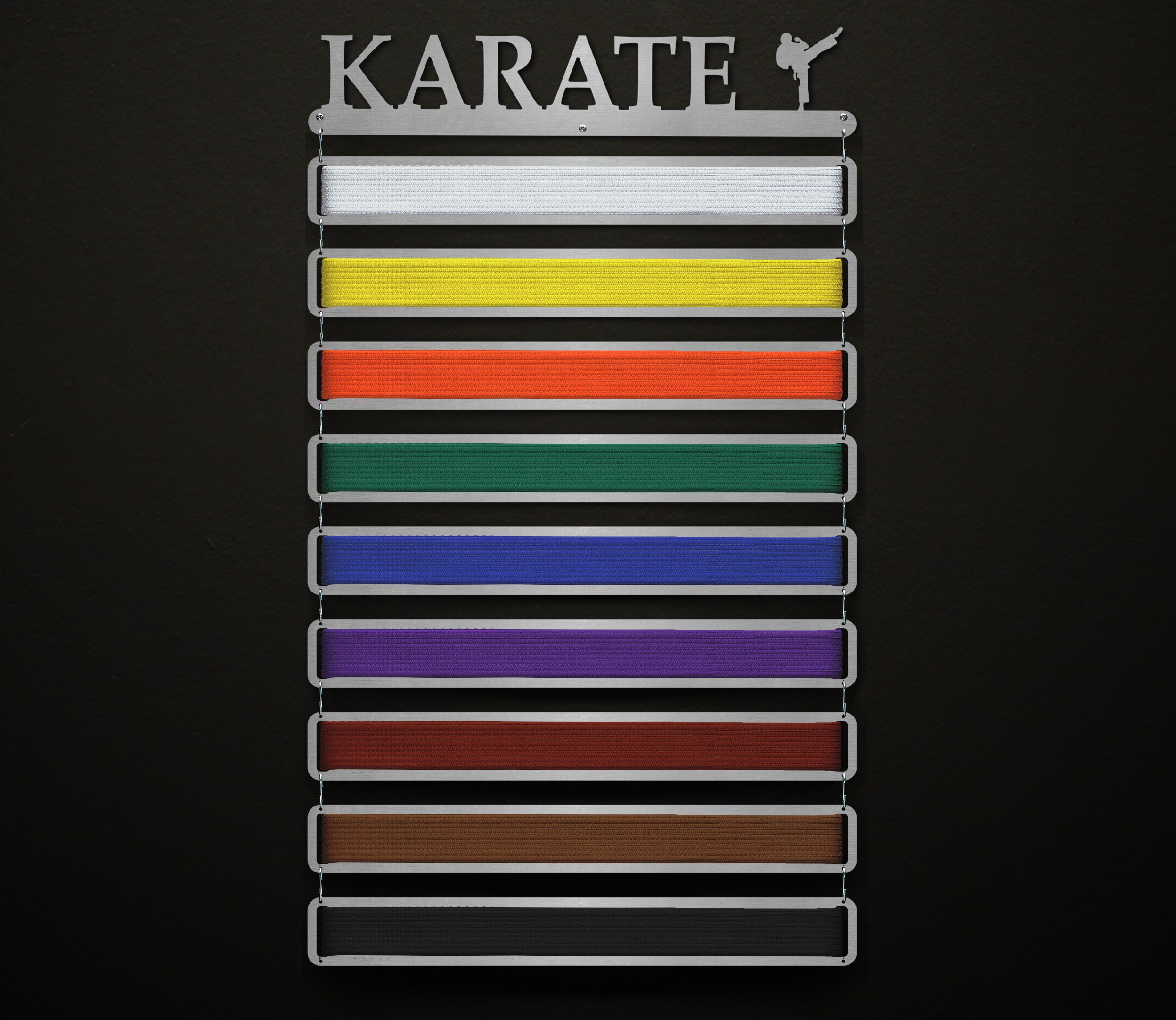 This modular design allows you to add your belts to the display as you earn them without having any blank or unused spaces for future belts. Once you earn a new belt, you just affix it to a new belt plank and hang it from your already-existing belt display!