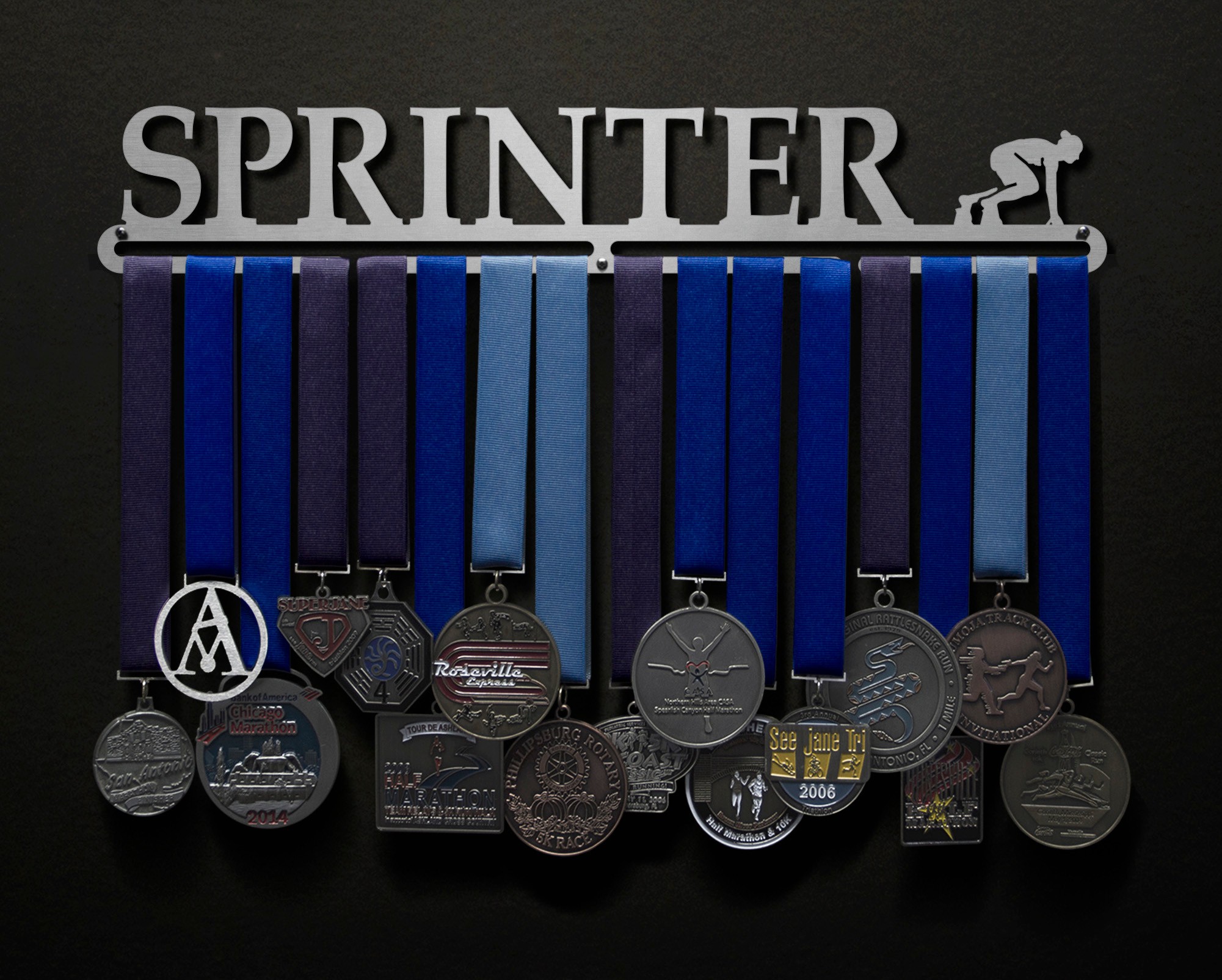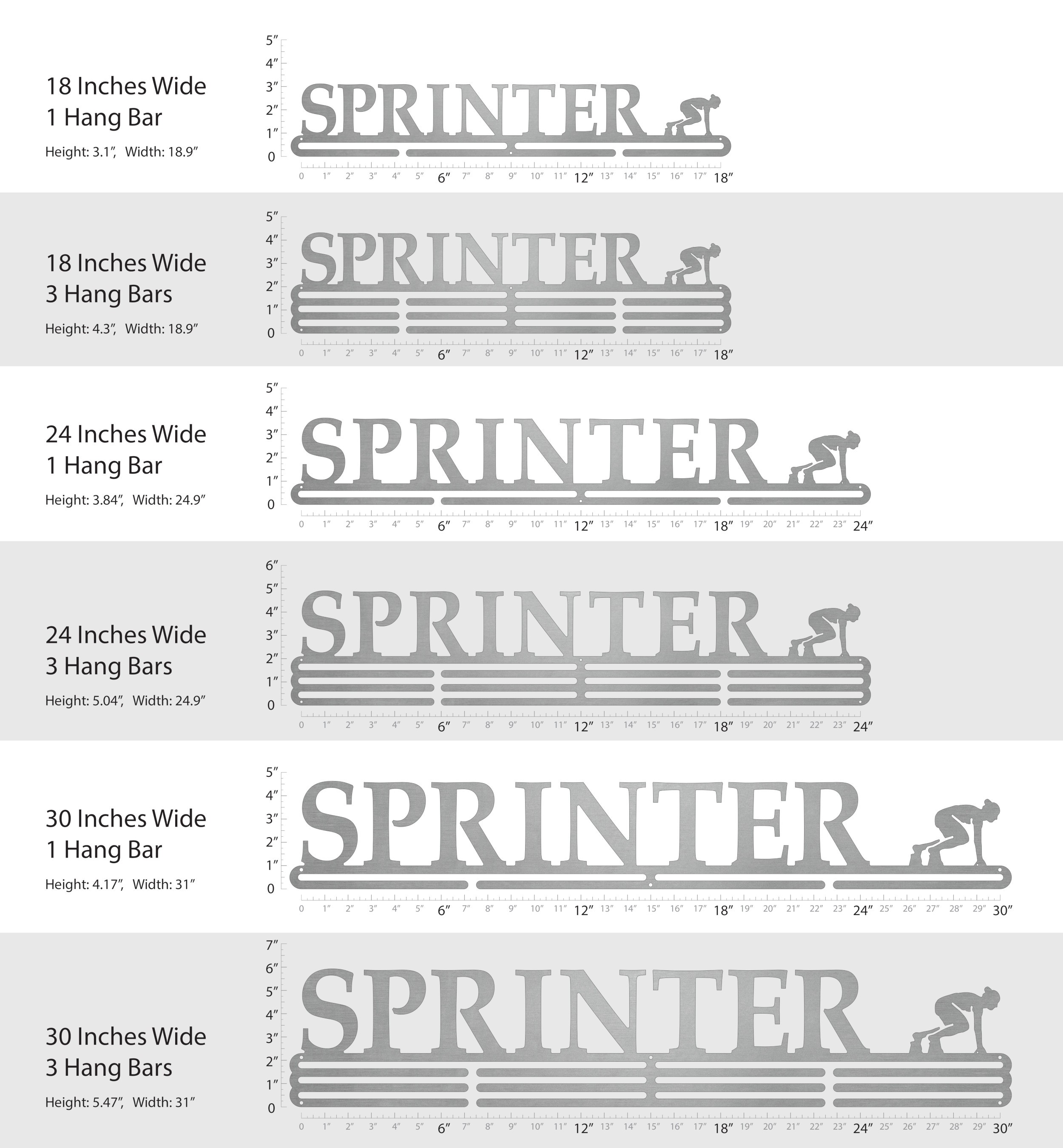 Put some pride on your wall with this Sprinter-inspired medal hanger! Every time you walk (or sprint!) by this medal hanger you will be reminded of all your hard work and dedication that got you this far, which will keep you focused and give you the extra motivation you need to keep moving forward!