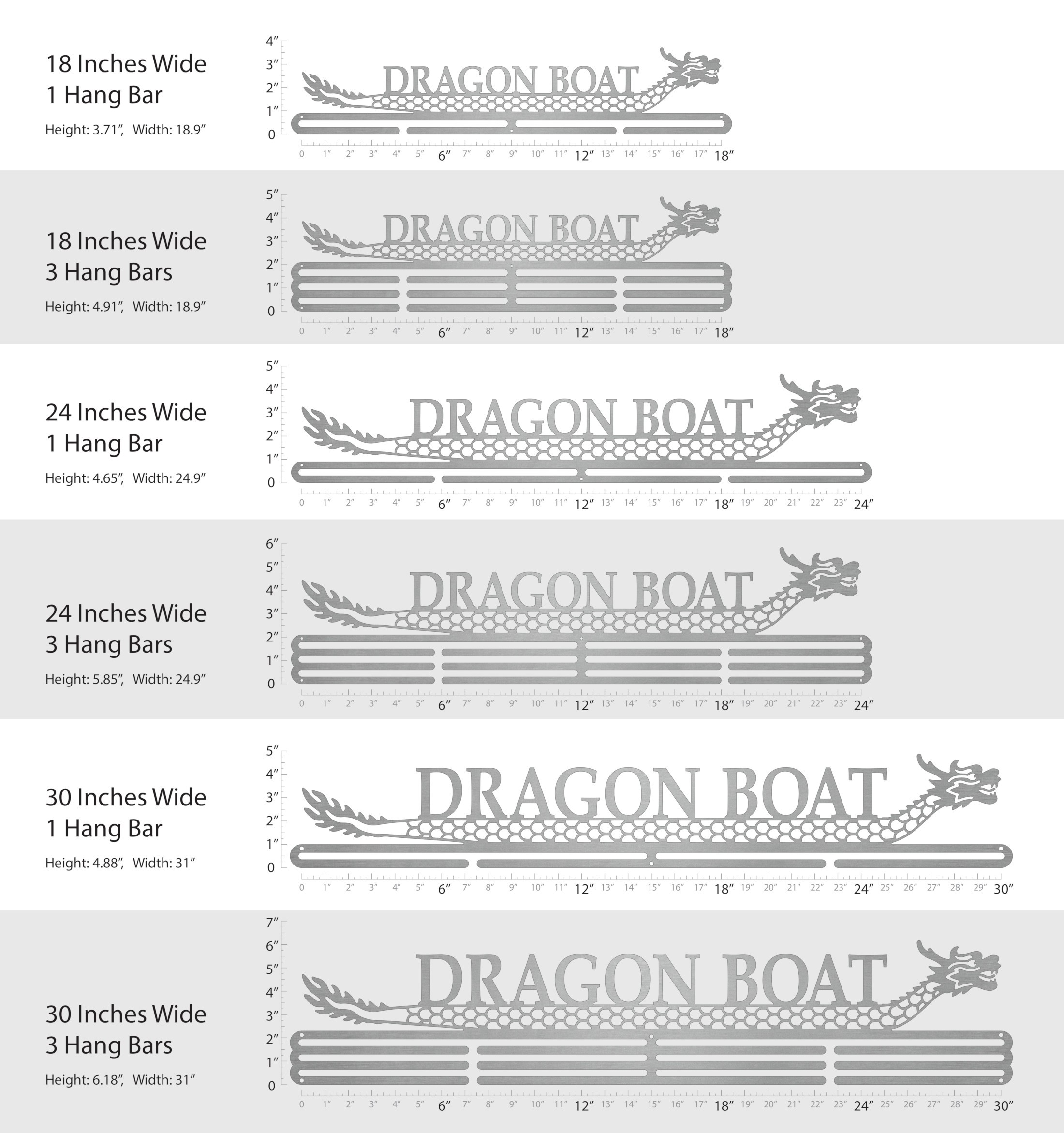 Unsure what size to get? We have created two consistently scaled images to show you what different sized displays look like when filled with medals.