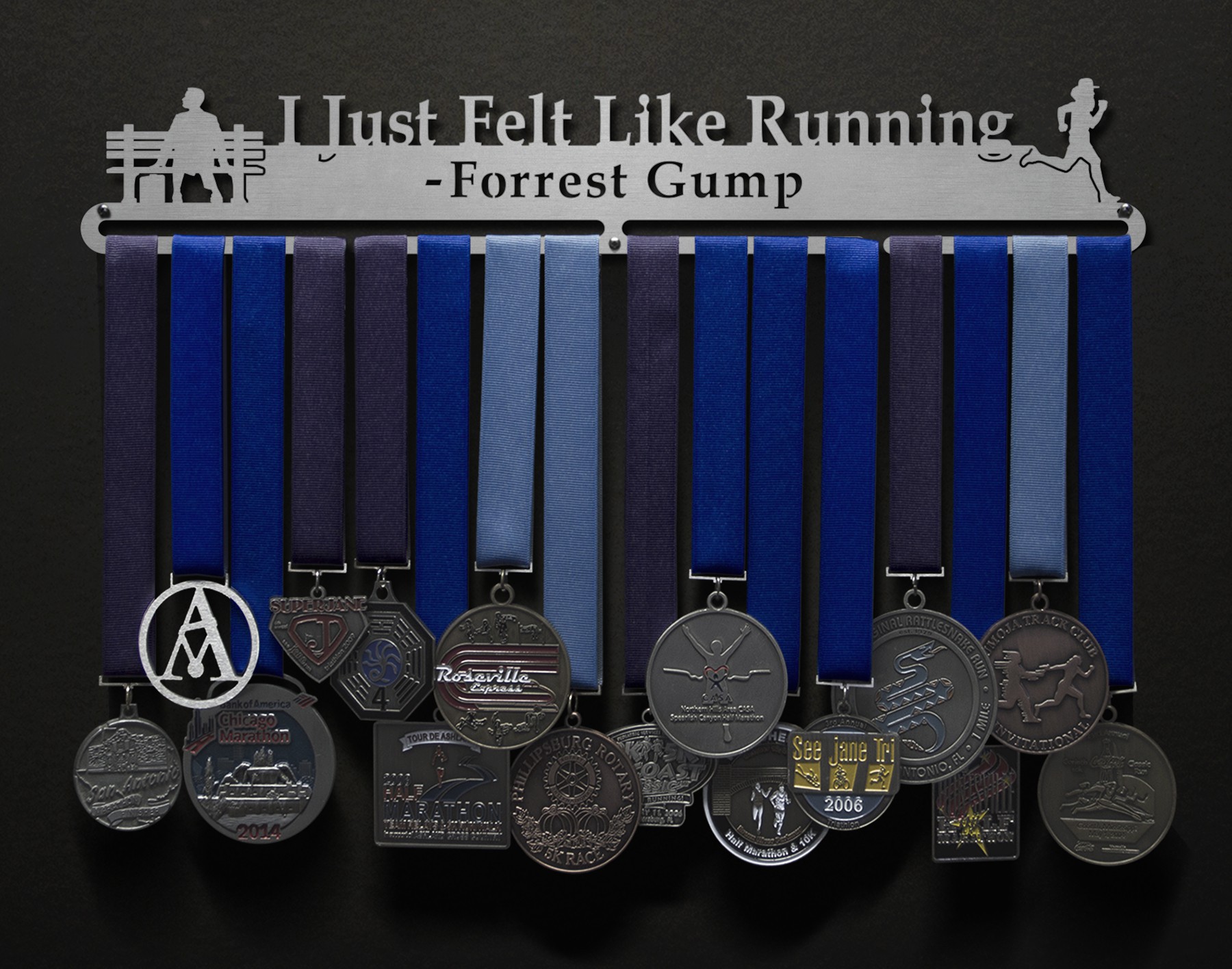 Celebrate one of the most iconic running quotes in a movie and show your love of running with a Forrest inspired medal display!