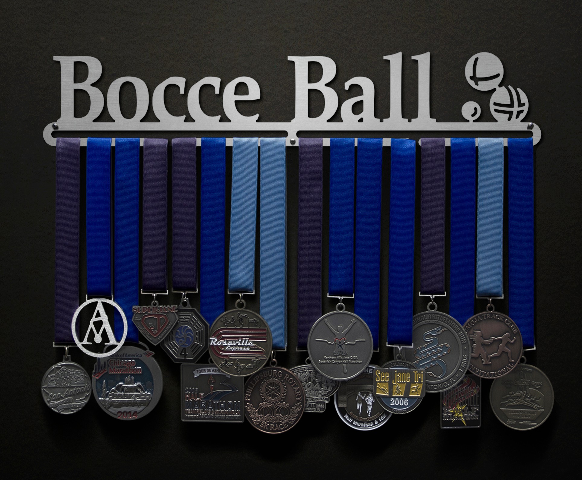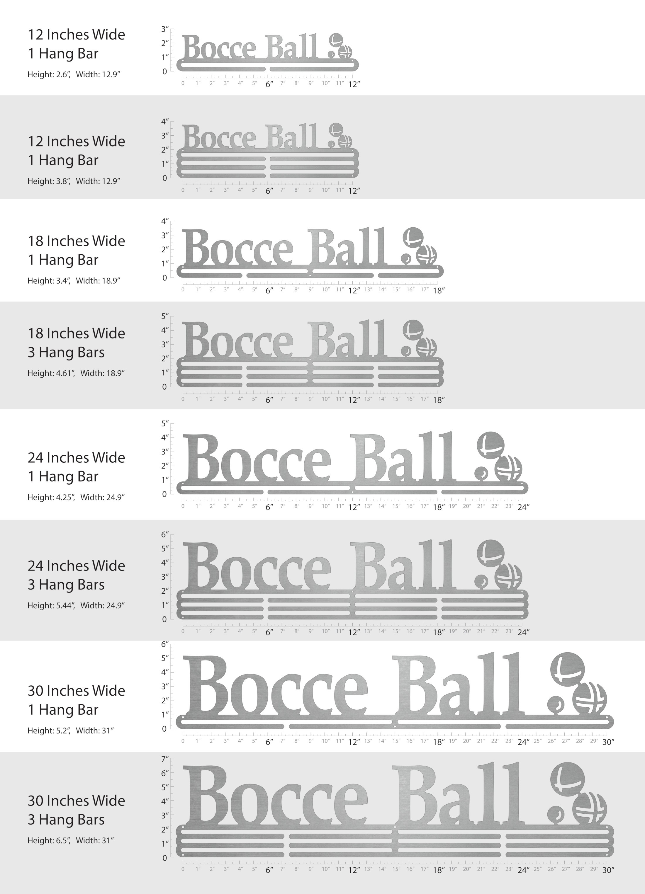 Unsure what size to get? We have created two consistently scaled images to show you what different sized displays look like when filled with medals.