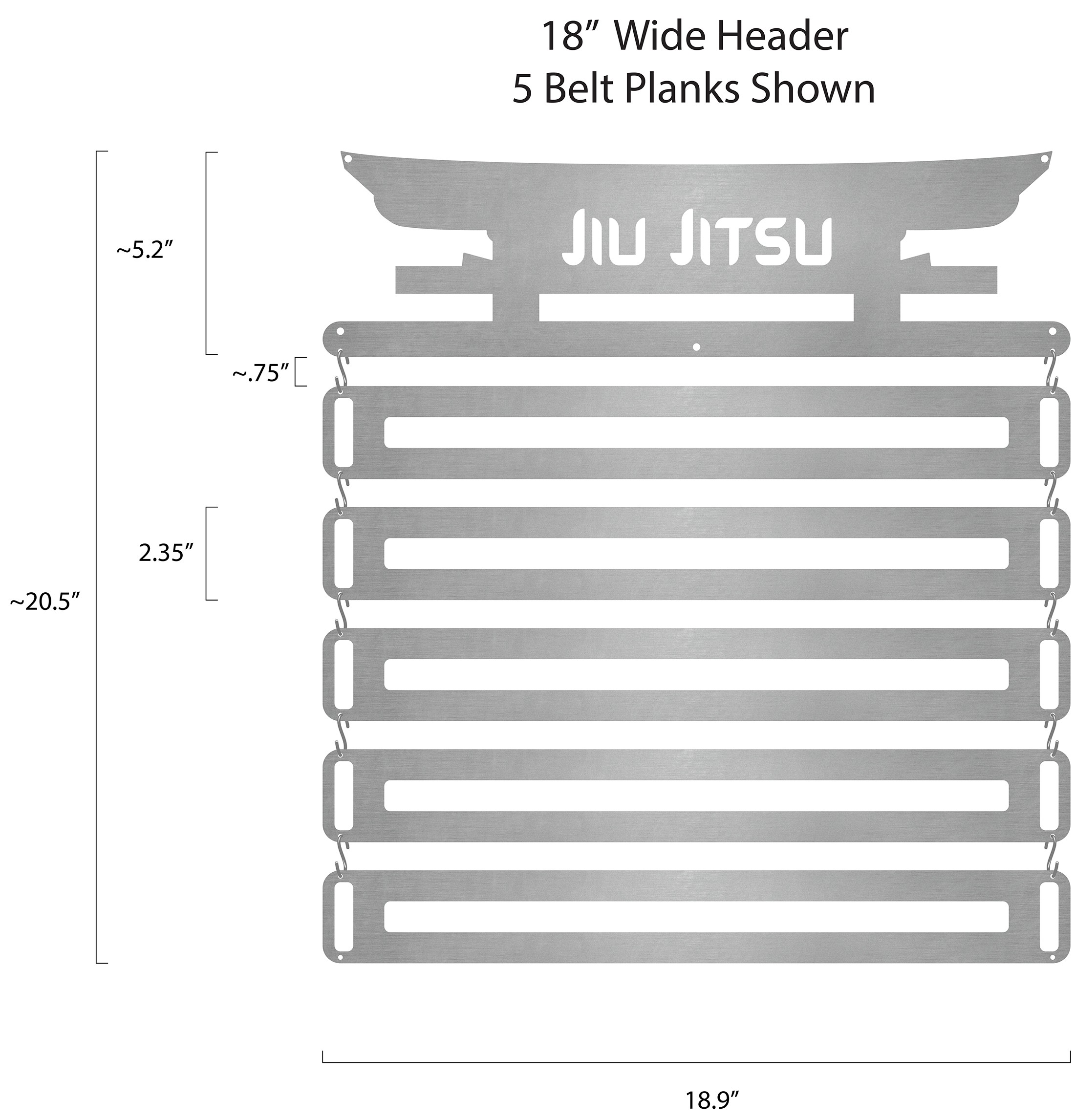 This modular design allows you to add your belts to the display as you earn them without having any blank or unused spaces for future belts. Once you earn a new belt, you just affix it to a new belt plank and hang it from your already-existing belt display!