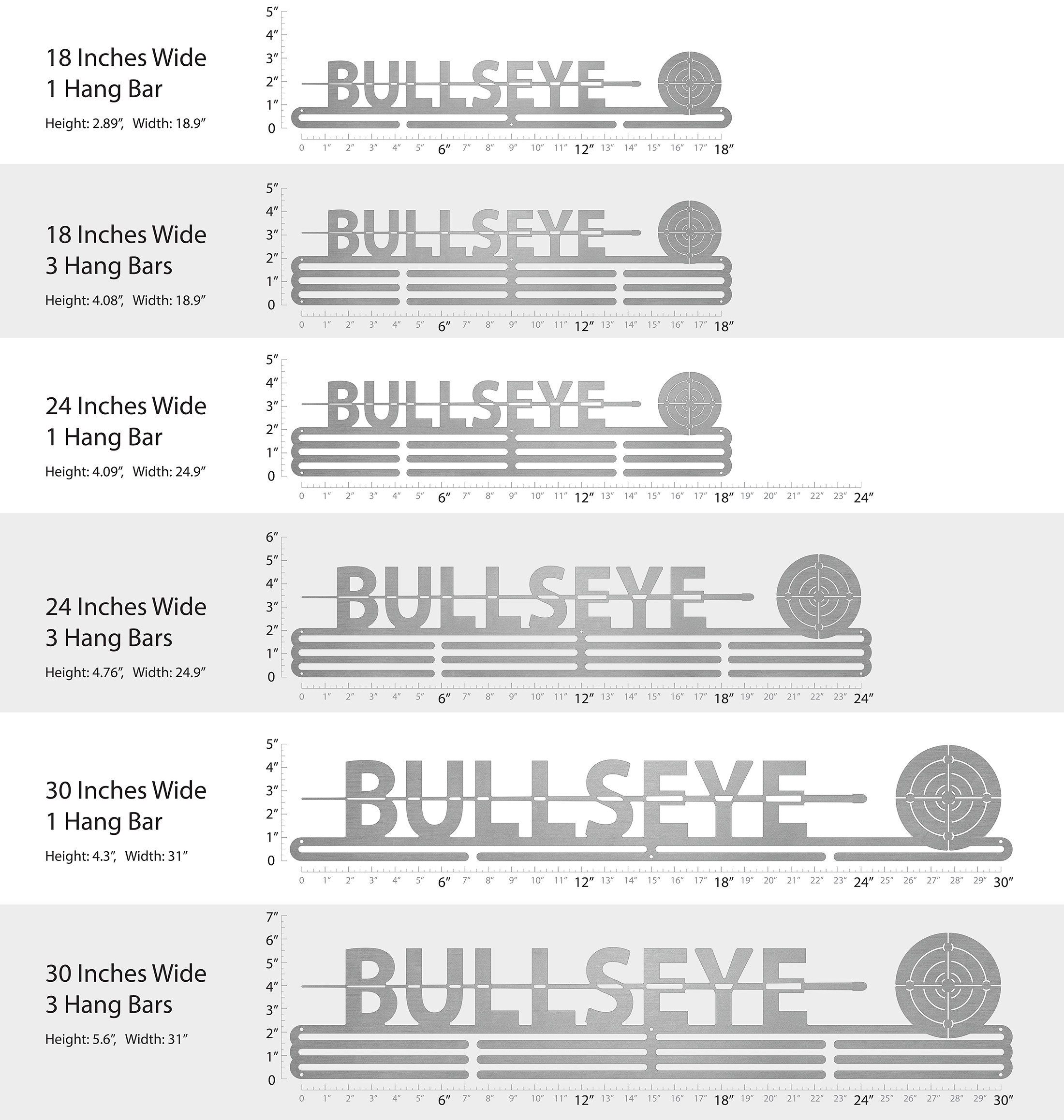 Unsure what size to get? We have created two consistently scaled images to show you what different sized displays look like when filled with medals.