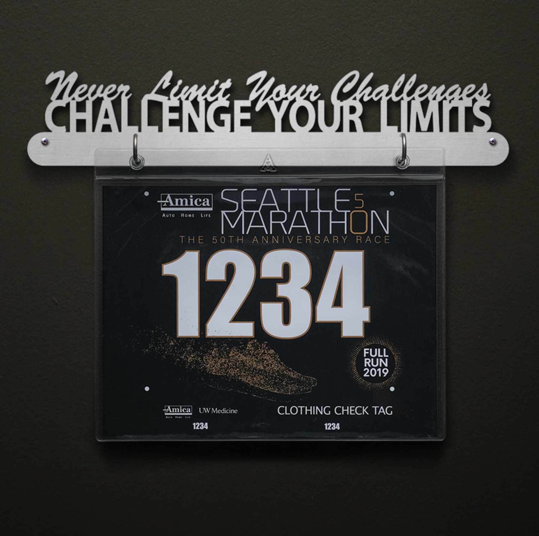 Without challenging your limits, how will you ever know what you're capable of? Whether you're faced with a tough run, grueling race, or long distance marathon, you should constantly be challenging the limits and boundaries of what you think you can achieve. You CAN face any challenge that is foolish enough to face you. Remind yourself of your own capabilities with this motivational display. This stainless steel bib hanger is made to be as strong as you are.