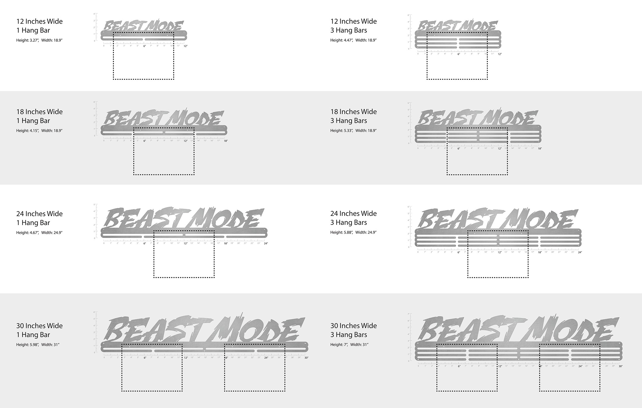 Unsure what size to get? We have created two consistently scaled images to show you what different sized displays look like when filled with medals.