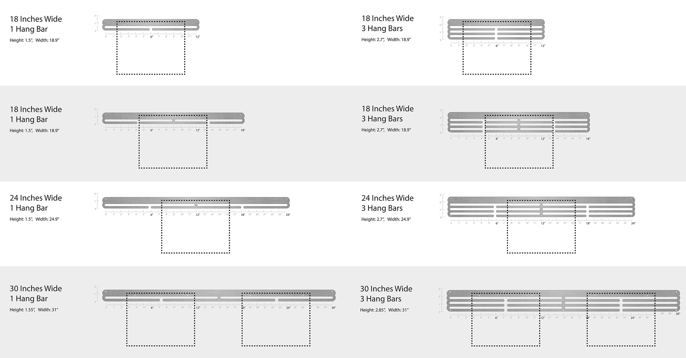 Unsure what size to get? We have created two consistently scaled images to show you what different sized displays look like when filled with medals.