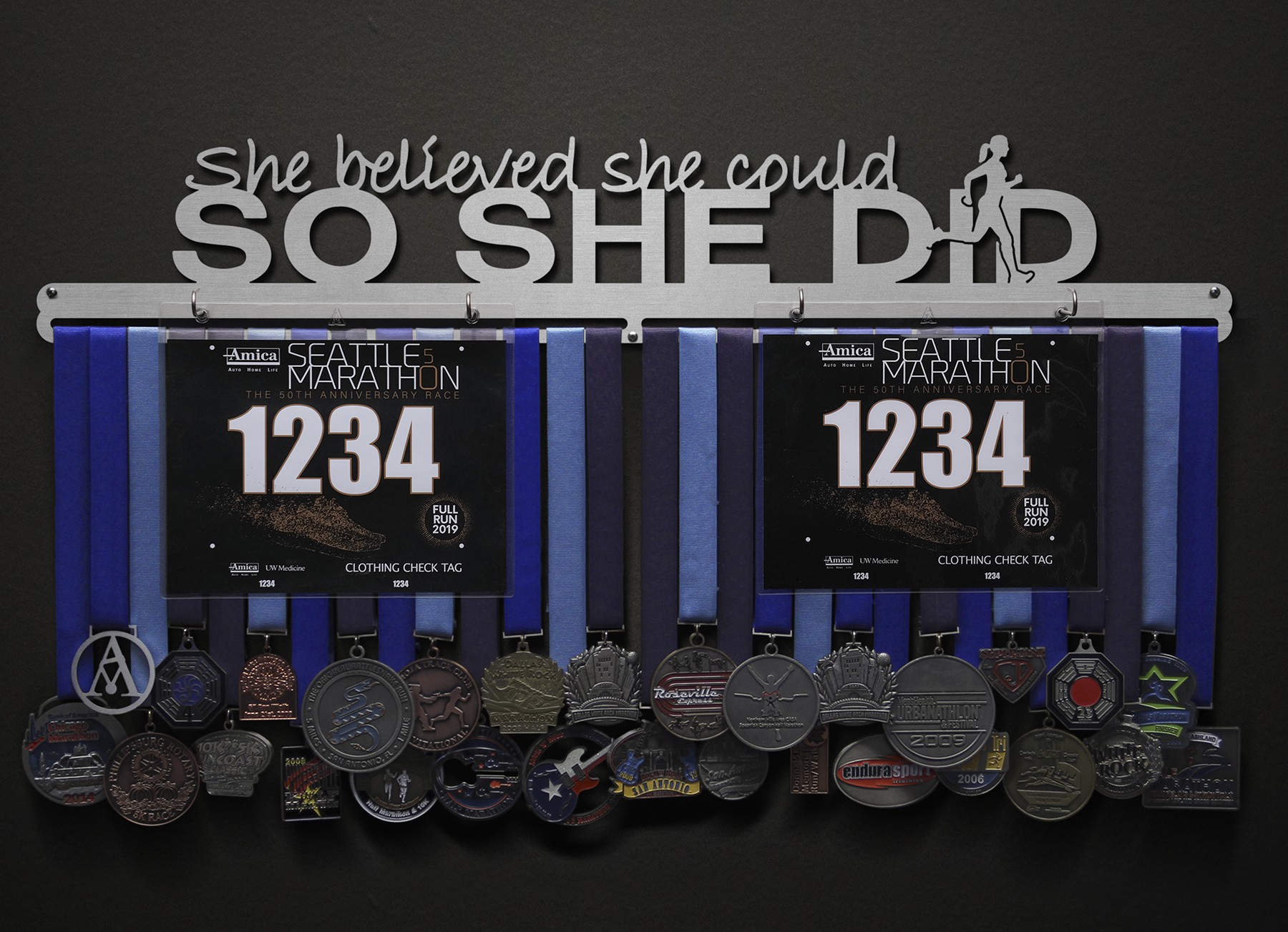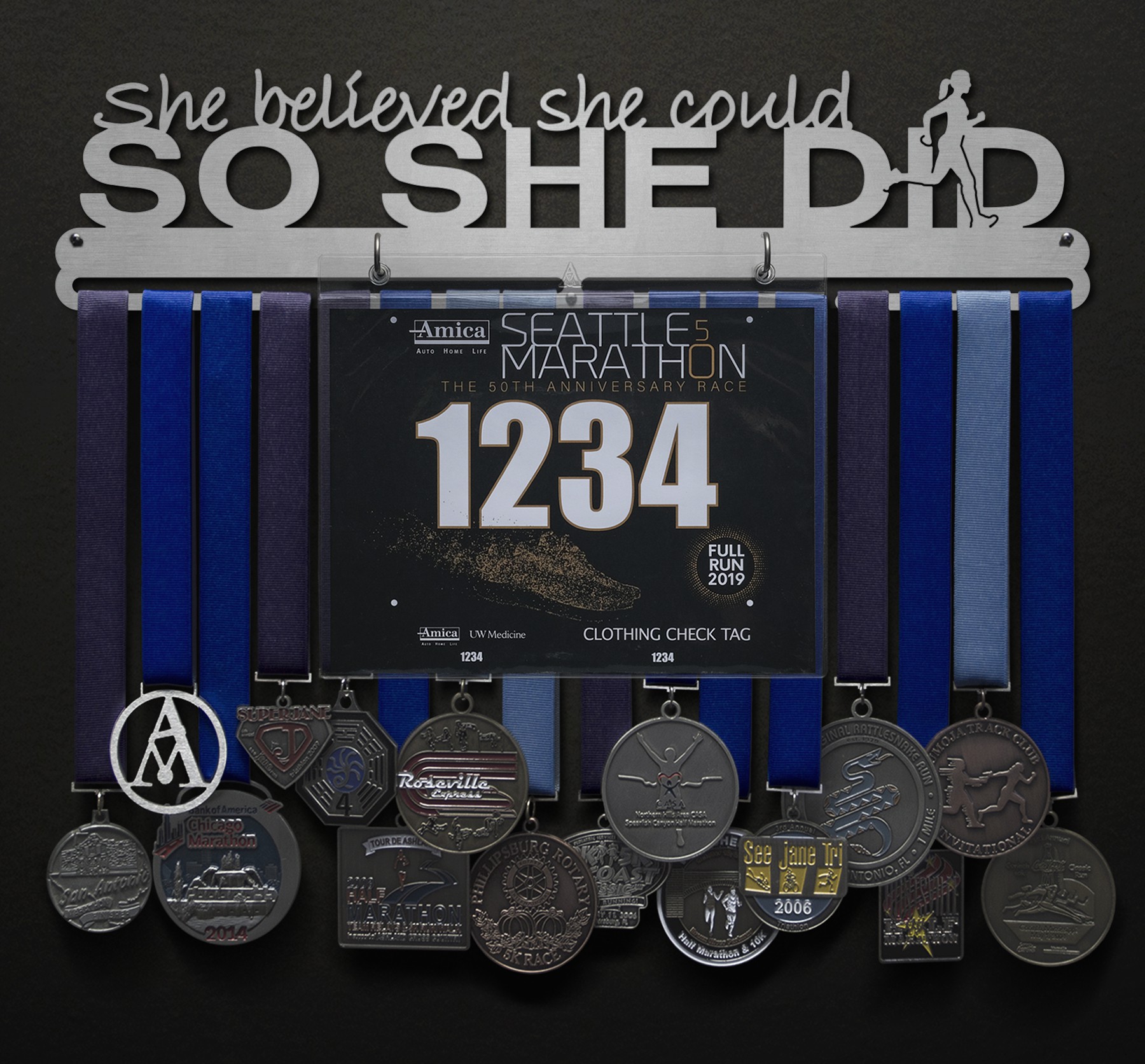 She Believed She Could, So She Did Bib and Medal Display - with runner figure