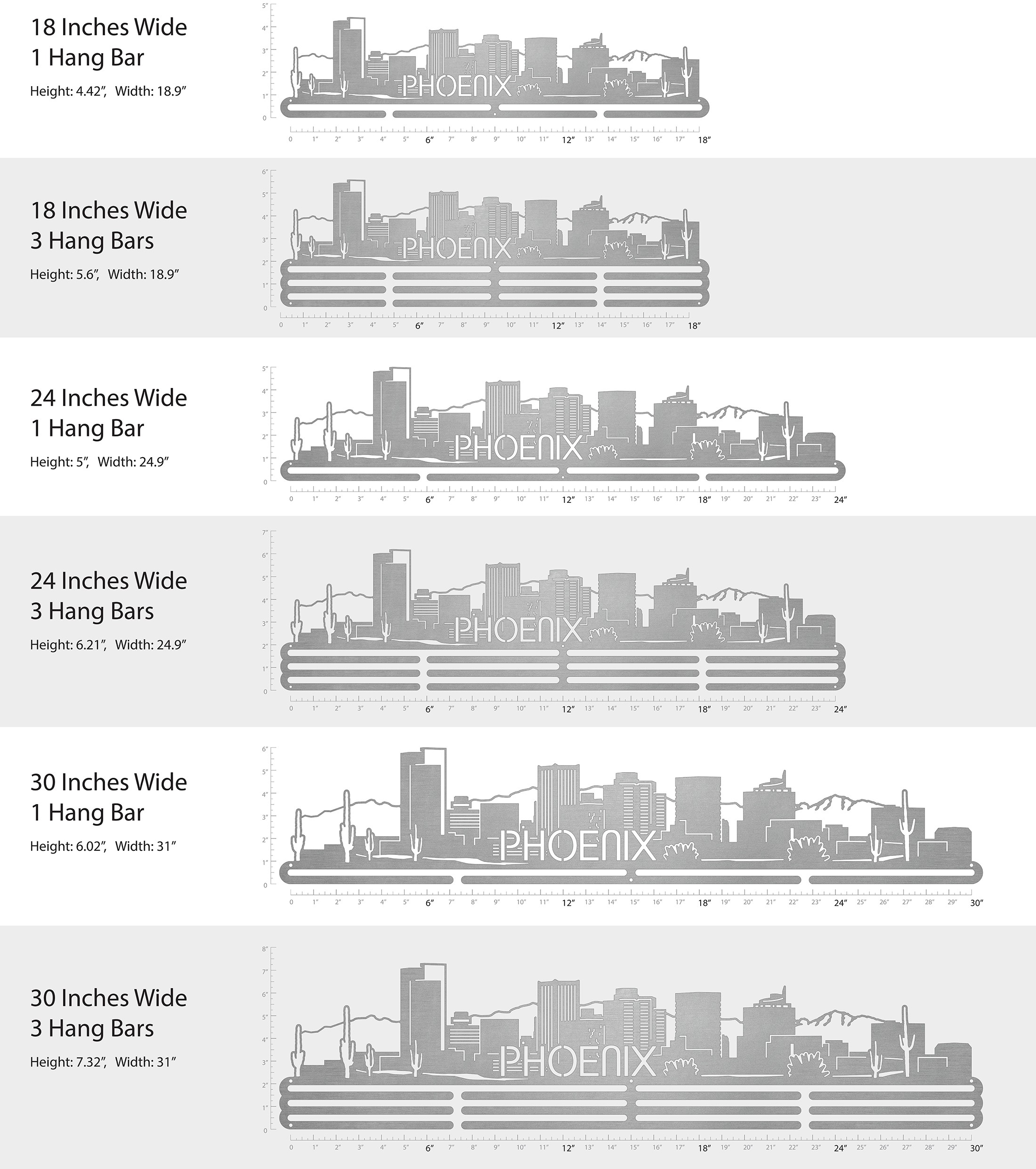 Unsure what size to get? We have created two consistently scaled images to show you what different sized displays look like when filled with medals.