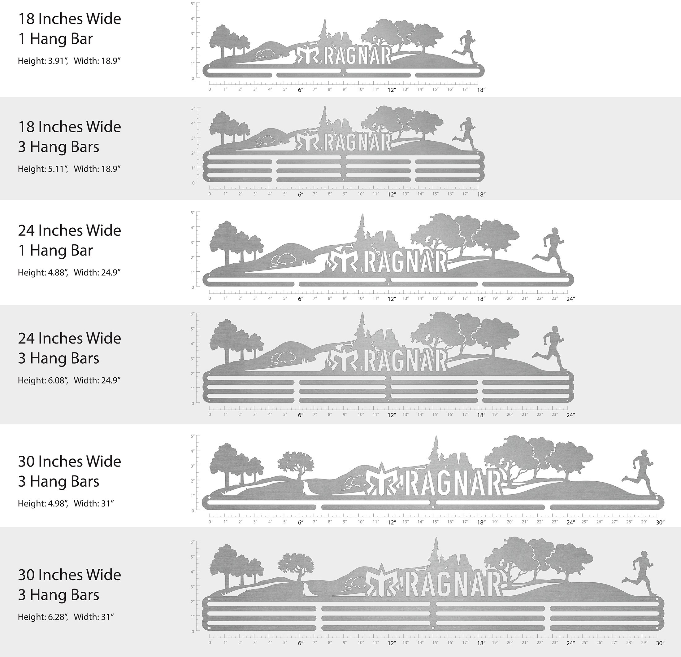 Unsure what size to get? We have created two consistently scaled images to show you what different sized displays look like when filled with medals.