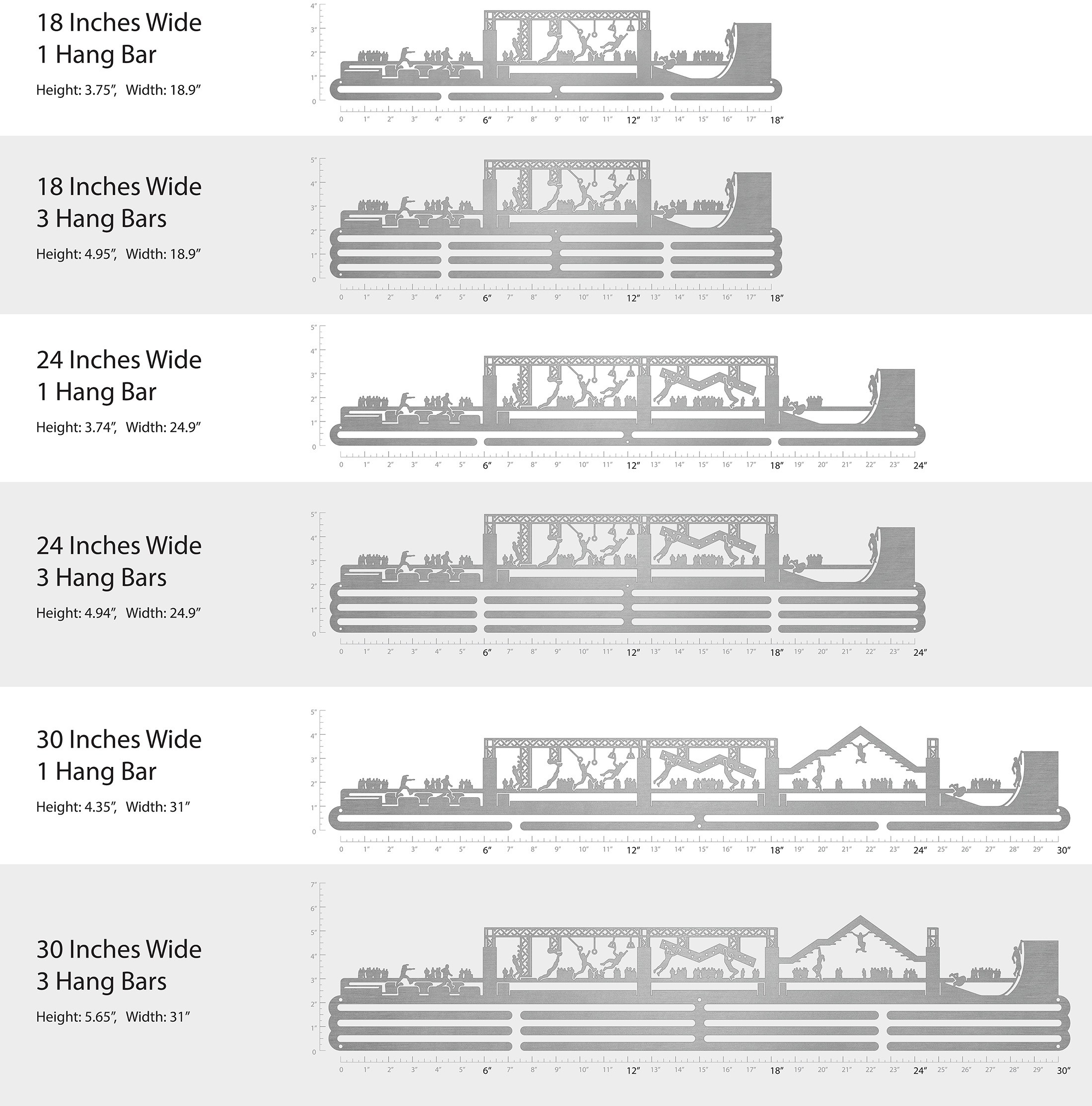 Unsure what size to get? We have created two consistently scaled images to show you what different sized displays look like when filled with medals.