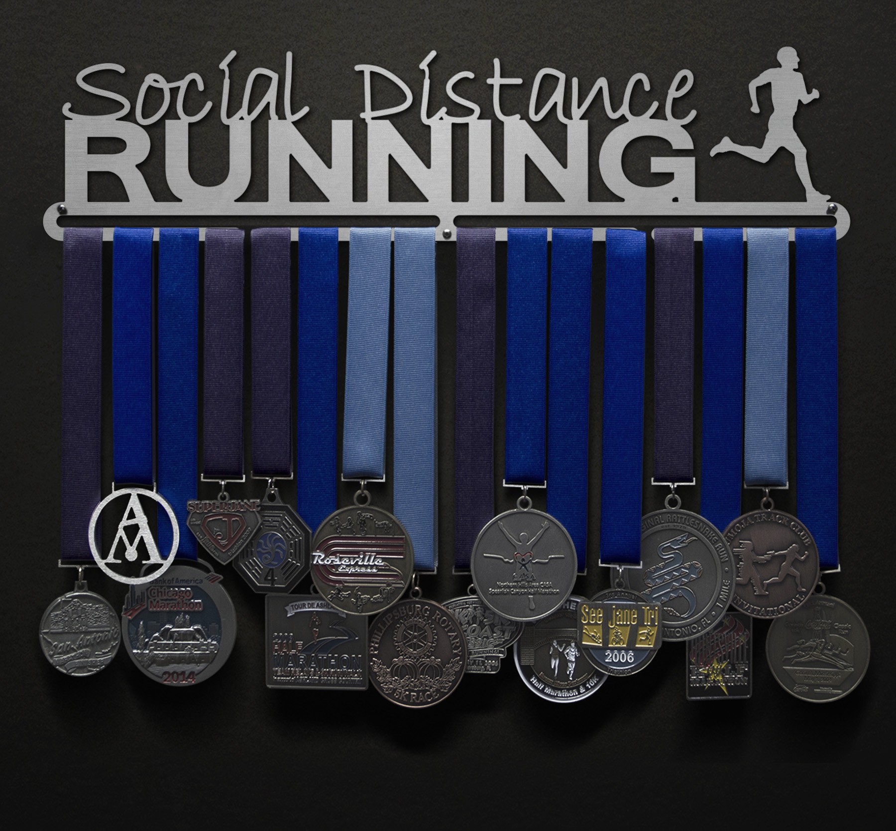 Who says social distancing means being lazy? Not you. Show off all of your virtual marathon medals with a brand new Social Distancing medal display!