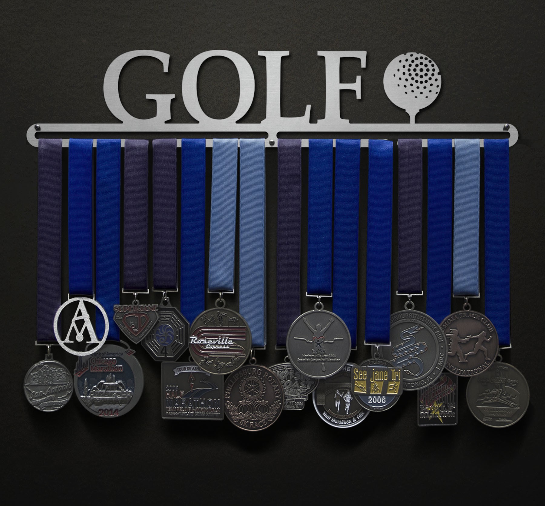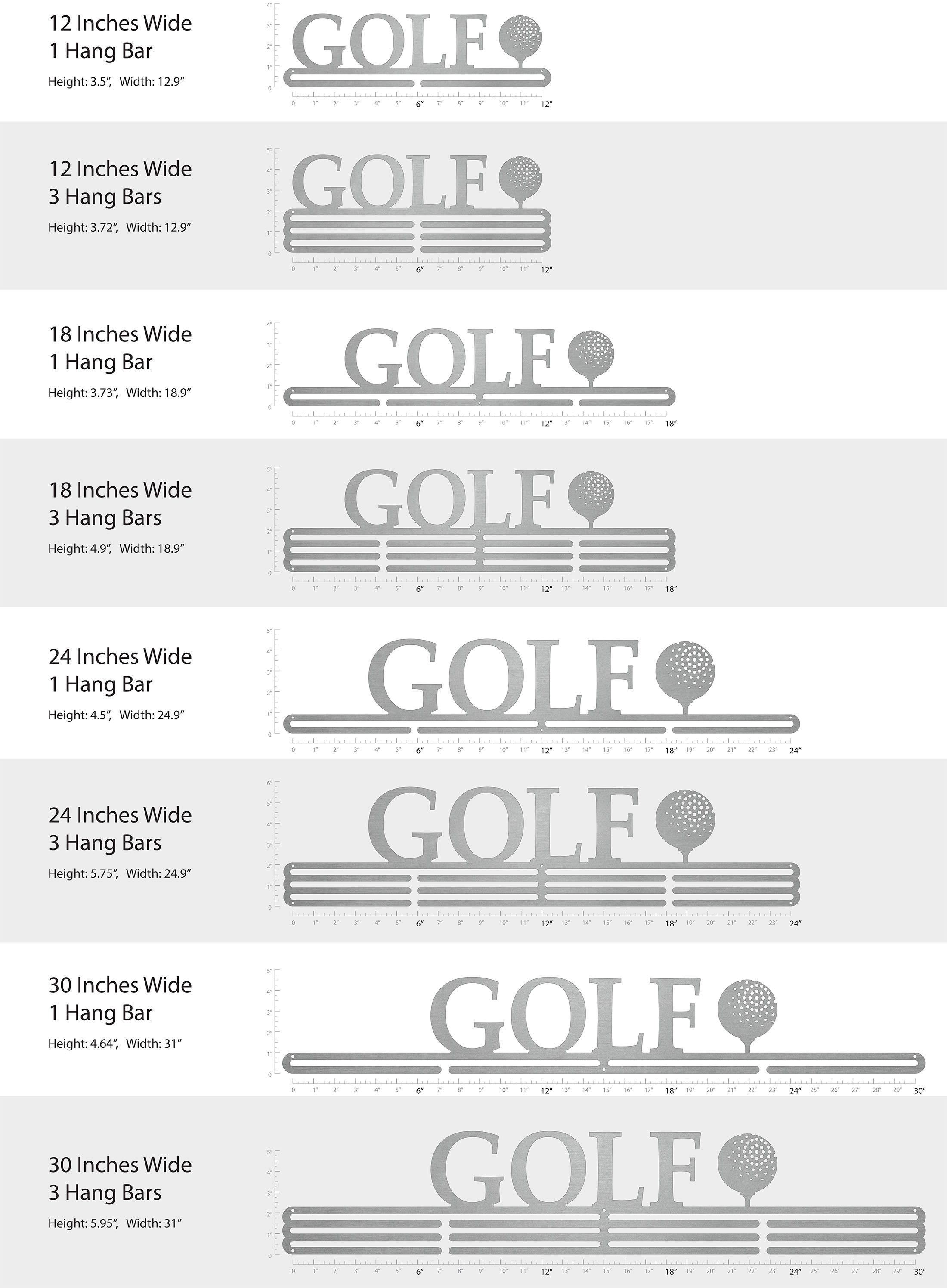 Unsure what size to get? We have created two consistently scaled images to show you what different sized displays look like when filled with medals.