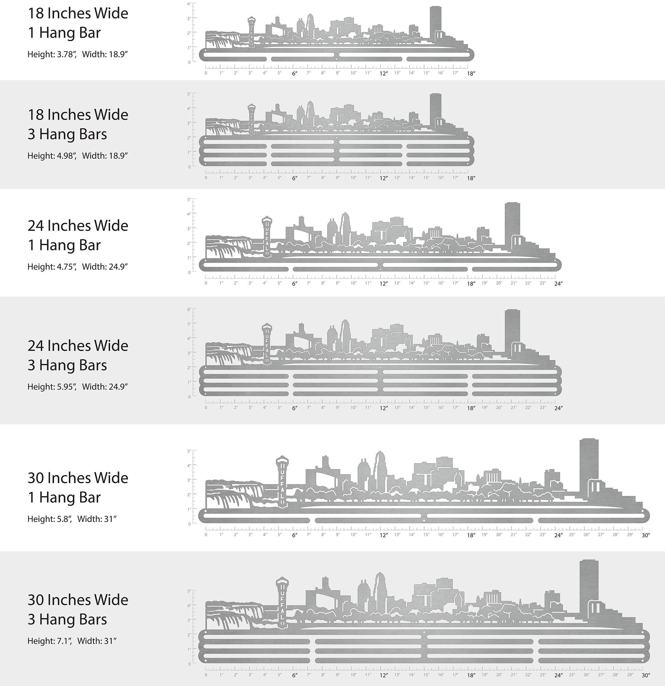 Unsure what size to get? We have created two consistently scaled images to show you what different sized displays look like when filled with medals.