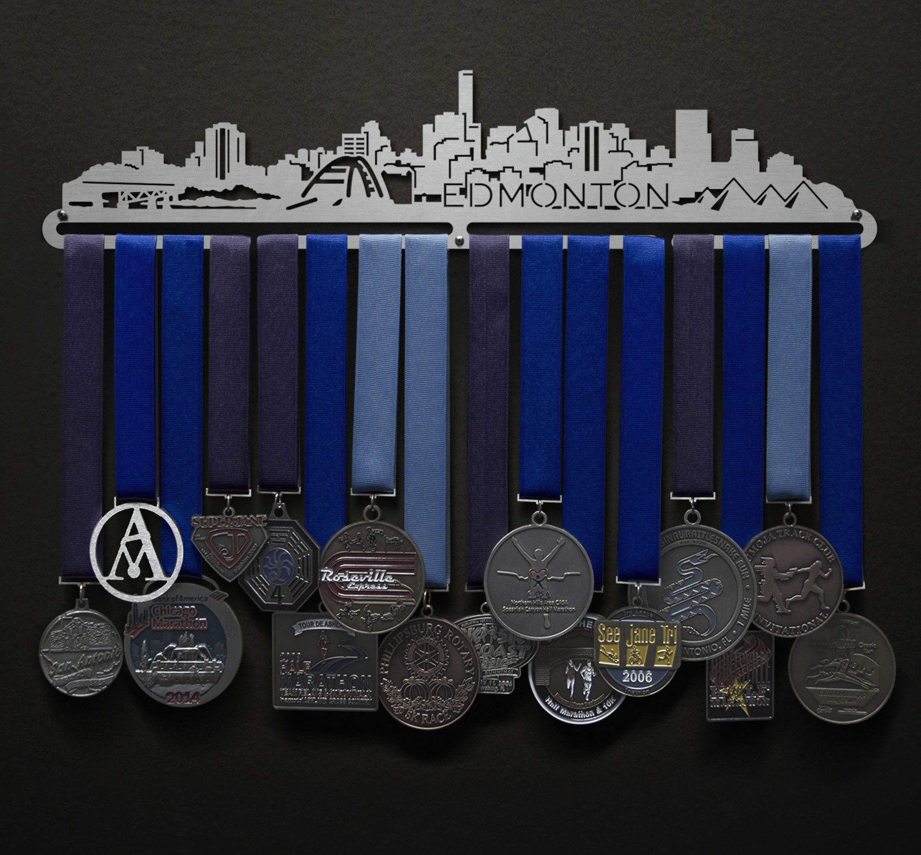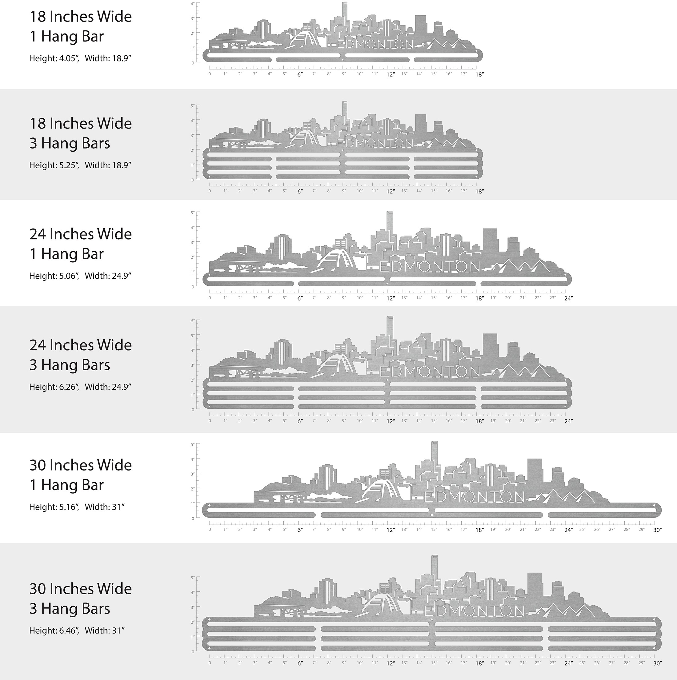 Unsure what size to get? We have created two consistently scaled images to show you what different sized displays look like when filled with medals.