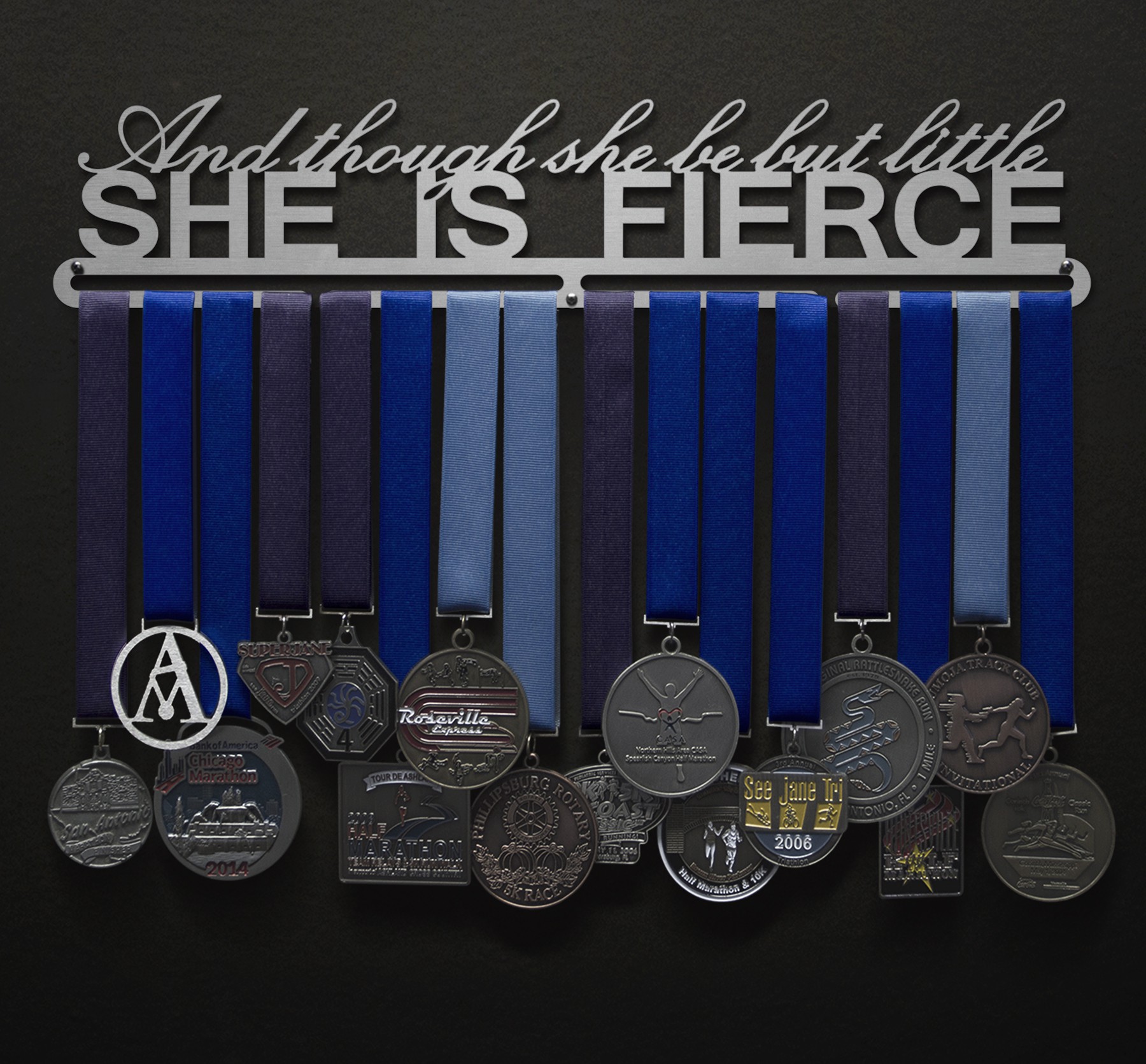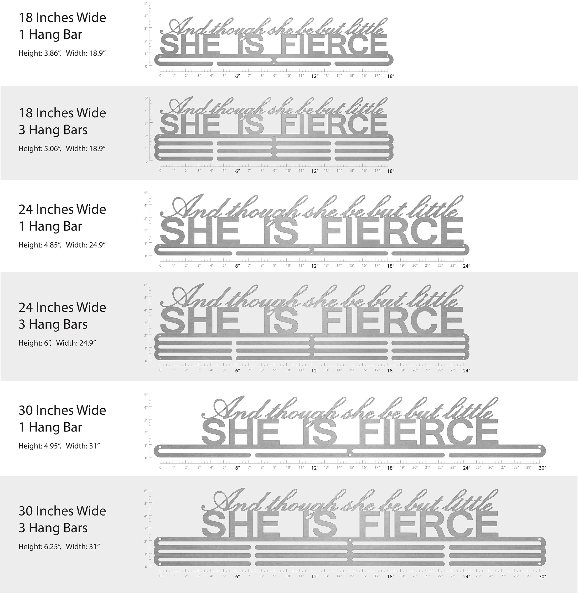 Unsure what size to get? We have created two consistently scaled images to show you what different sized displays look like when filled with medals.