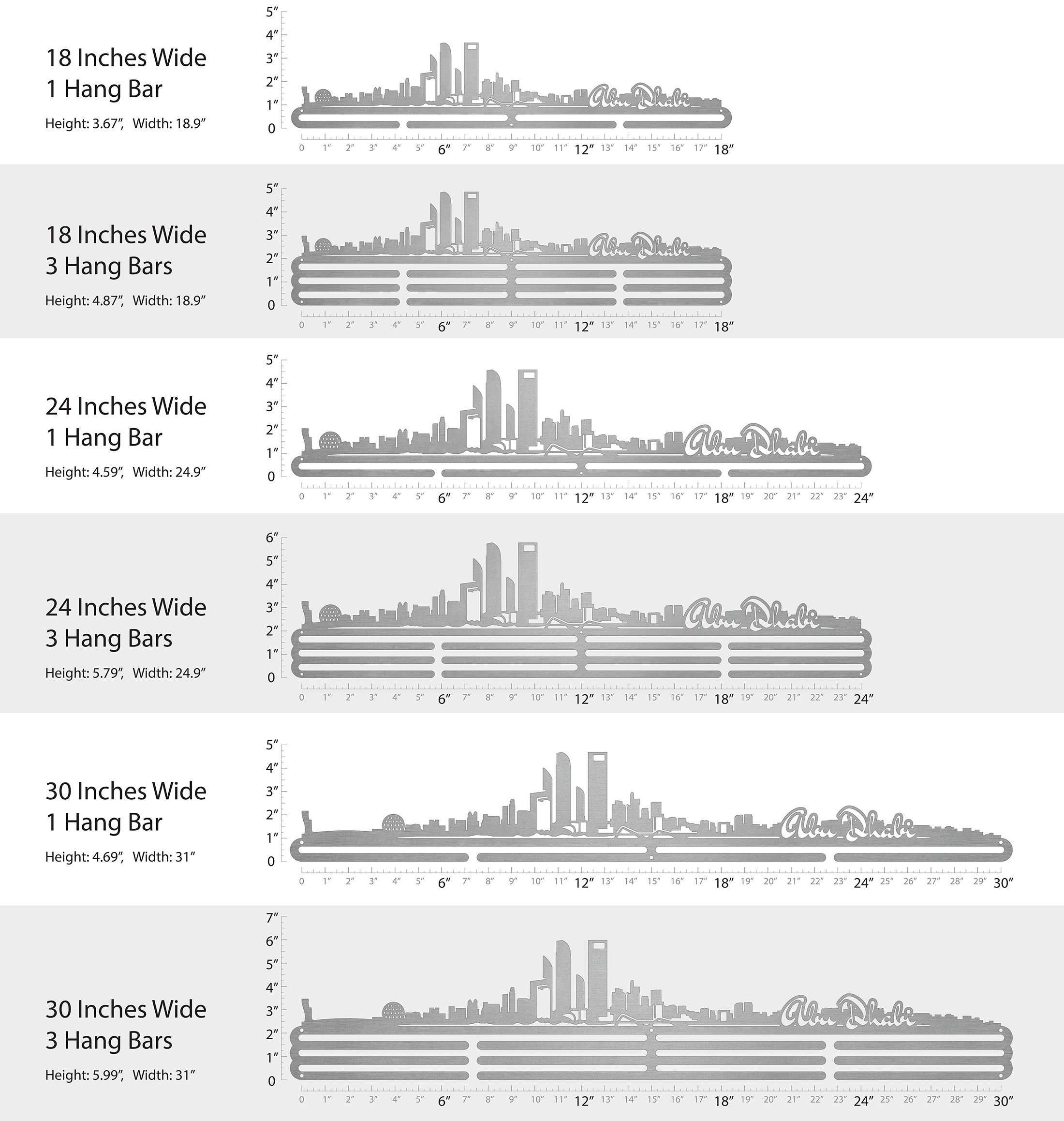 Unsure what size to get? We have created two consistently scaled images to show you what different sized displays look like when filled with medals.