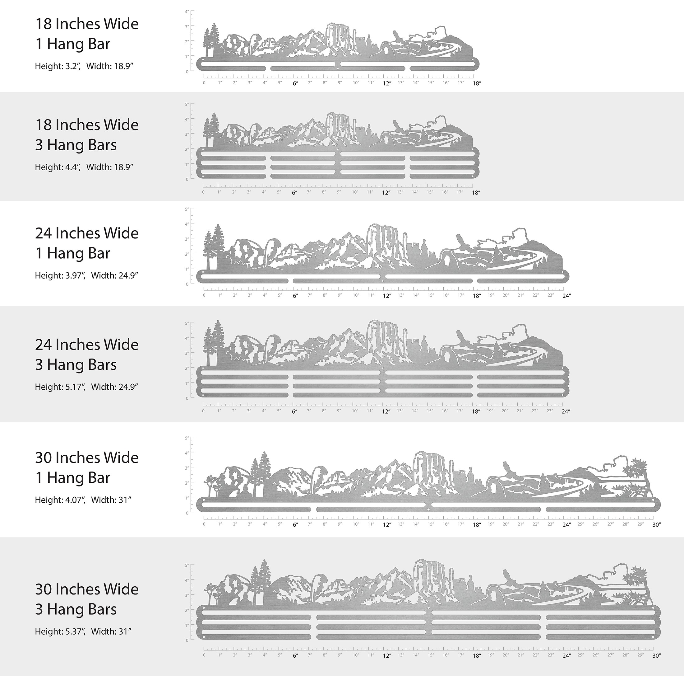 Unsure what size to get? We have created two consistently scaled images to show you what different sized displays look like when filled with medals.