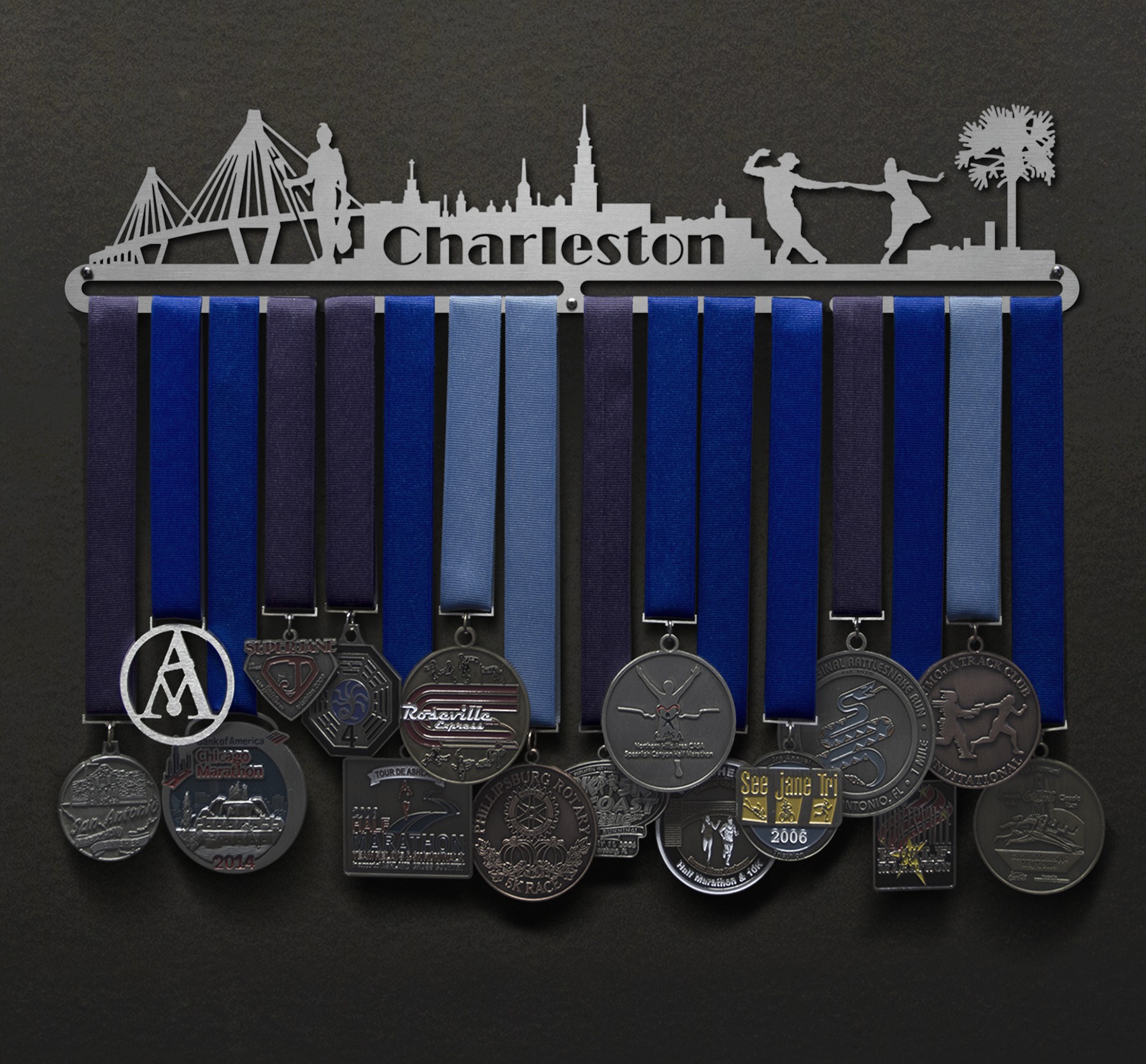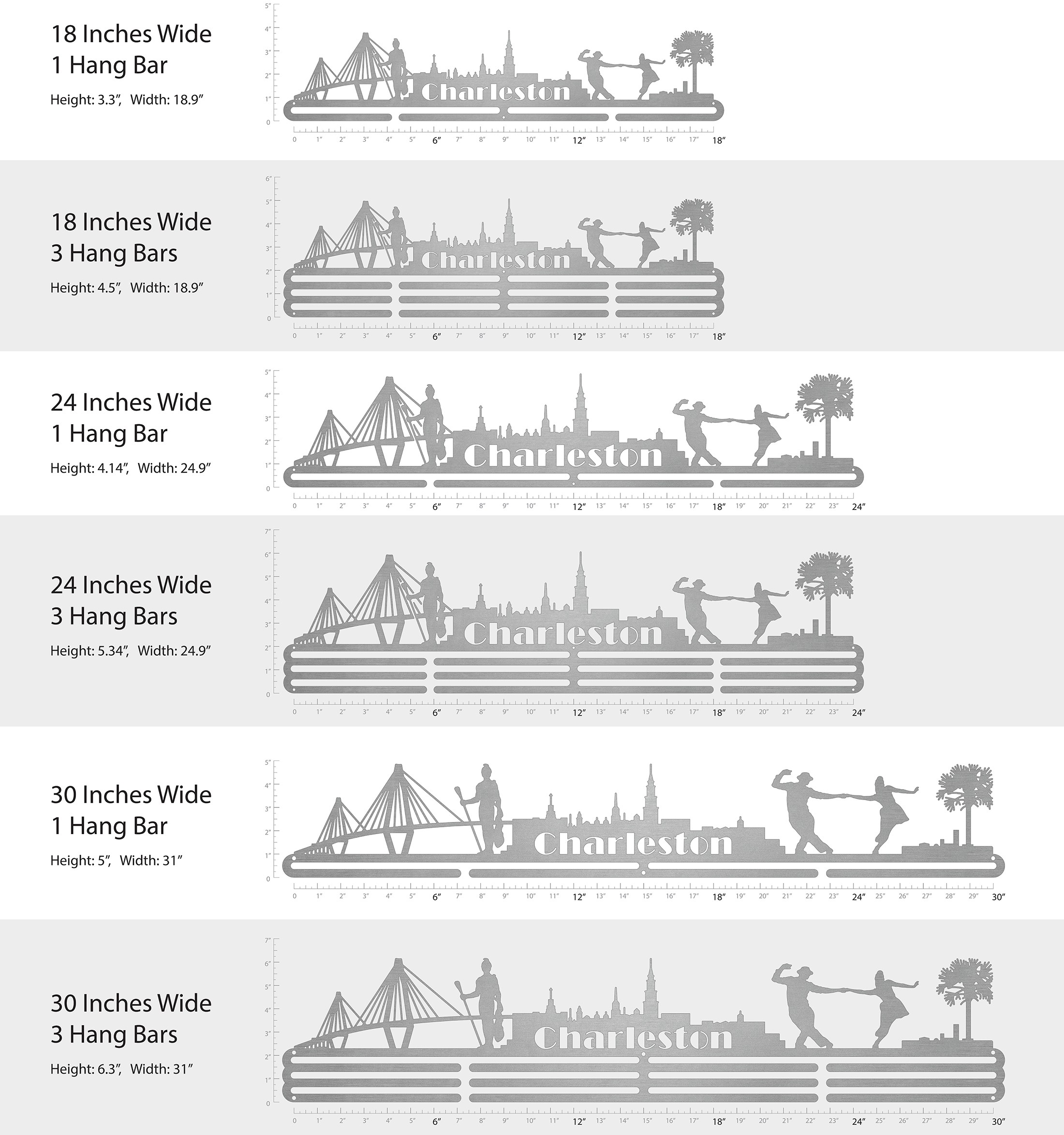 Unsure what size to get? We have created two consistently scaled images to show you what different sized displays look like when filled with medals.