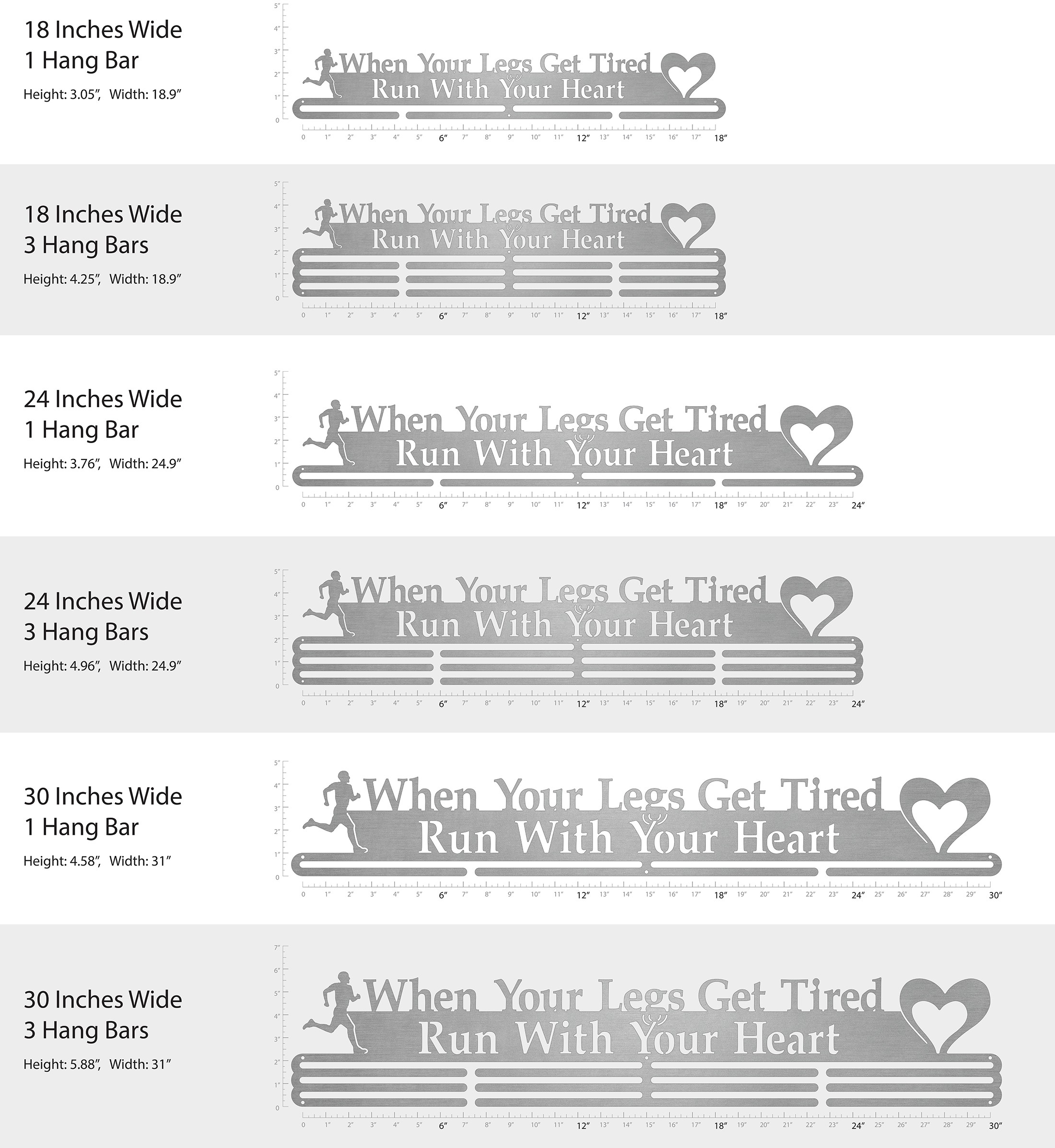 Unsure what size to get? We have created two consistently scaled images to show you what different sized displays look like when filled with medals.