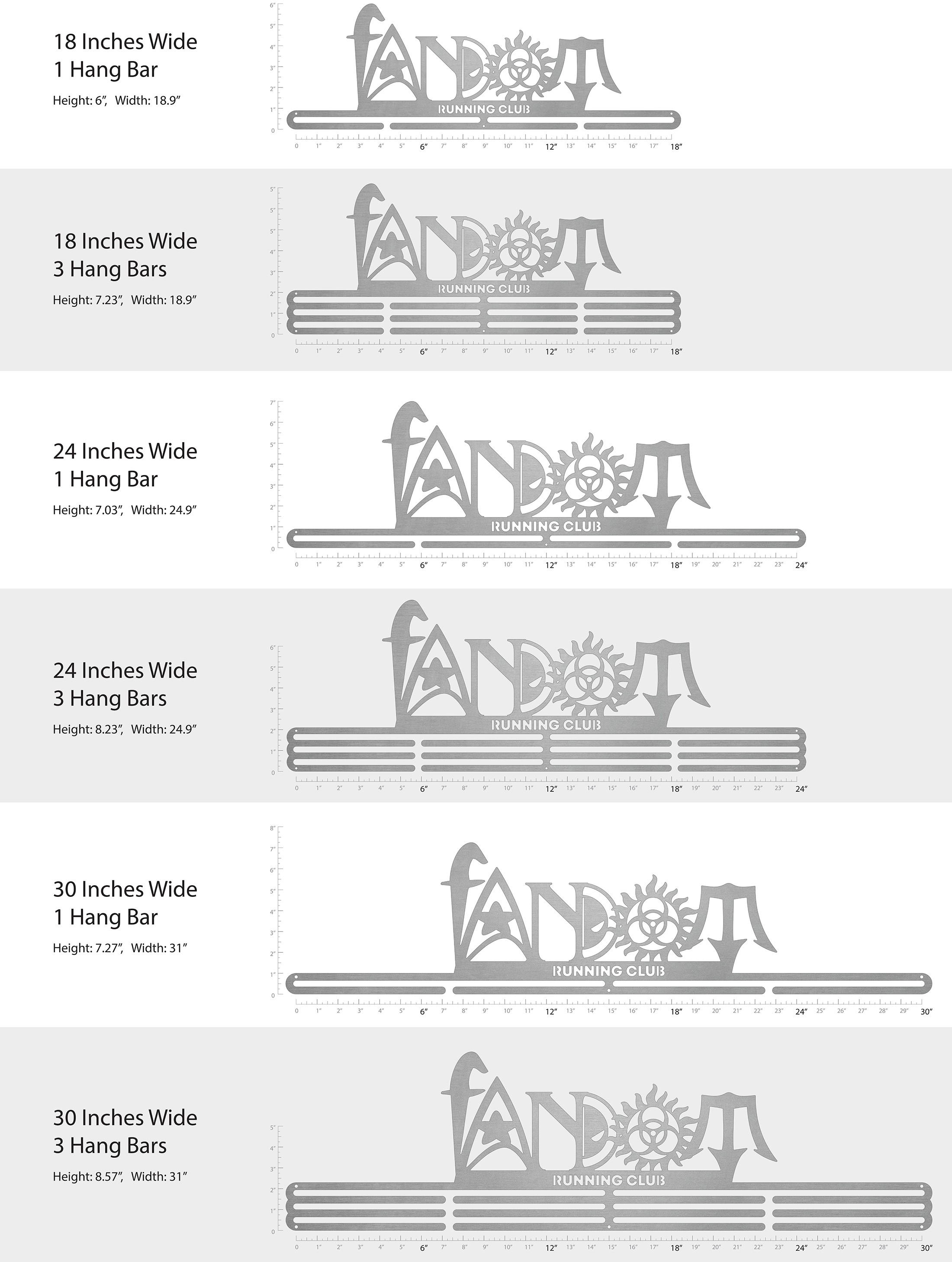 Unsure what size to get? We have created two consistently scaled images to show you what different sized displays look like when filled with medals.